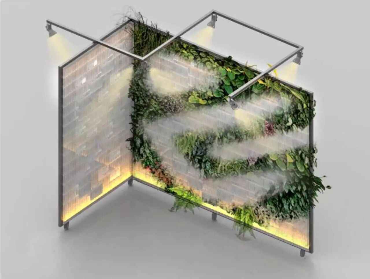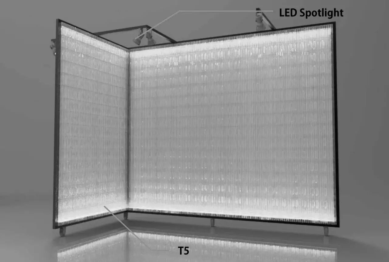 这个作品来自于北京成龙集团某制作基地。由水桶、DVD光盘片、聚光灯灯壳及高跟鞋回收polycarbonate再制而成光线穿透在晶莹砖体中交织折射,为展出的艺术品打造出梦幻闪亮的展演廊道,跟随着各种象限的大号型帷幕迂回环绕,引领造访者将目光停留其中,剎那即永恒。