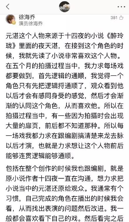 粉丝们也是力挺徐海乔,纷纷在官博下留言,希望给大家一个完整的元湛。