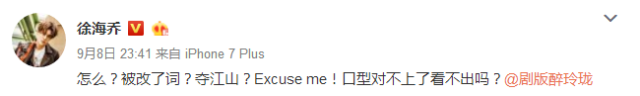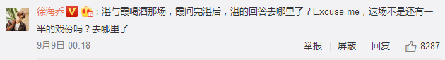 徐海乔还在自己的微博下评论有一场戏一半的戏份都没有了。