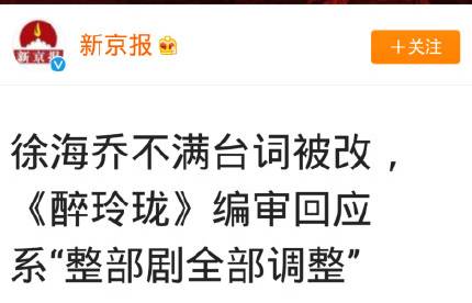 随后《醉玲珑》的编审回应,:“整部剧全部调整,我们只是希望剧情和人物能丰满些,但人设我认为是没有改变的。”