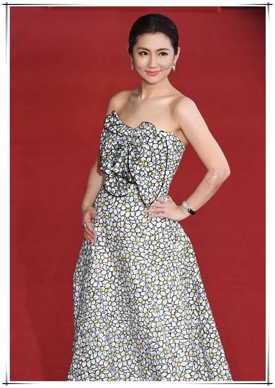 任家萱穿了一件印花的花纹,晚礼服这件晚礼服上有很多小雏菊的印花花纹,让她整个人看起来十分清新甜美,同时,这件连衣裙是抹胸的设计,这样可以很好的凸显出她纤细的身材。任家萱把头发扎了起来,整个人都看起来非常的干净利落有气场。