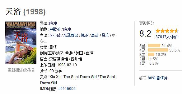 现在,一搜《天浴》出来的都是里面的:“裸戏风波”、“李小璐大尺度裸露”。实在半点都没有显示出这部电影的震撼和伟大来,仅仅靠“裸露”来作为噱头,侮辱了这部电影。