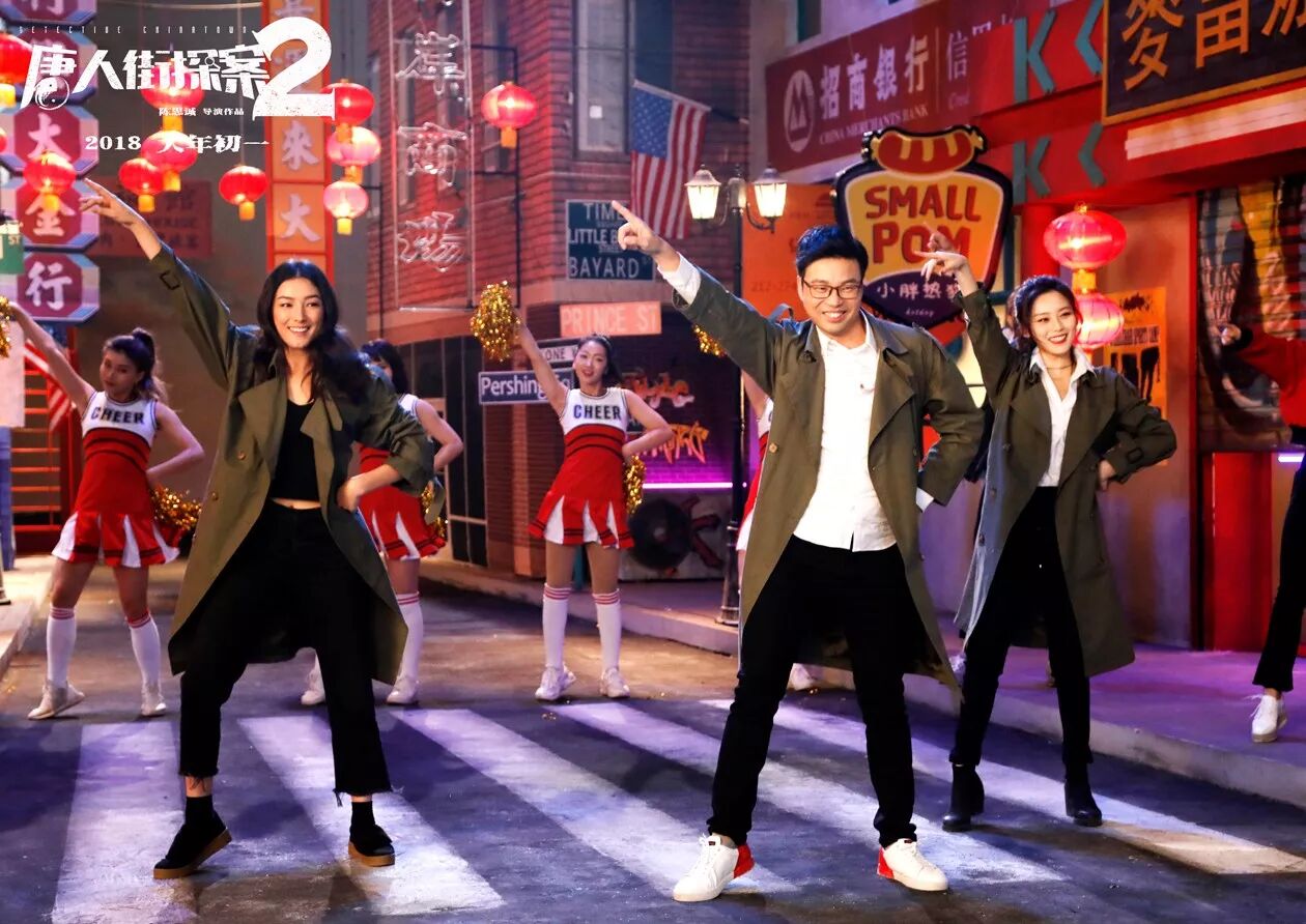 “China神探空降美利坚,天才白痴搭配最经典”,这首《Happy扭腰》是南征北战继为《唐探1》定制《萨瓦迪卡》歌曲后的再次出手,编舞则来自韩国著名歌手鸟叔的御用团队。轻快洗脑的歌曲,搭配王宝强、刘昊然、肖央、刘承羽、尚语贤、王迅等的魔性舞姿,喜剧效果十足。
