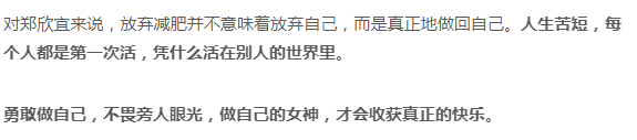 如今的郑欣宜真正地做回了自己,成为一个快乐而美丽的“小胖子”。