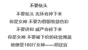 2014年,她发表复胖宣言,“瘦不代表靓,不代表开心,也不代表健康”,向所有人宣布不再减肥,要正在地做回自己。