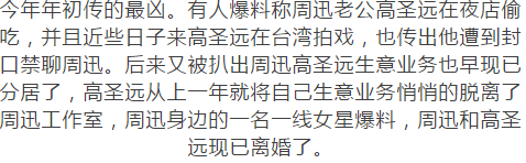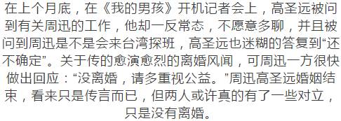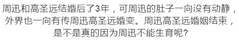 周迅离婚了!被爆离婚原因竟是不能生育? 微小说精选 内地女星 2018-01-22 21:00:40 427 创作不易,用心坚持,欢迎请BaGua喝几杯爱心咖啡!打赏并支持本文 打赏并删除本文 2014年周迅和大自己5岁的华裔老公高圣远步入了婚姻的殿堂,而两人从揭露爱情到成婚才只是70天,敢爱敢恨的周迅遇到对的人一直是果断的,但是闪电成婚的两人婚后并不怎么美好。不管怎么样还是希望他们好好的且行且珍惜! 创作不易,用心坚持,欢迎请BaGua喝几杯爱心咖啡!打赏并支持本文 打赏并删除本文 感谢您的支持鼓励,我会继续努力的!文章地址:用户邮箱:打赏金额:USDT 请输入数字点击”去打赏“,即可进行打赏支持本文章哦 周迅 About the Author 微小说精选 功能介绍:最新言情小说,抢先看 Related Posts 分手半年首“同台”,柯震东台下坐看李毓芬! 2018-06-05 00:00:21 周迅离婚了!被爆离婚原因竟是不能生育? 2018-01-22 21:00:40 郭富城:我想演被张震性侵的桂纶镁 2017-10-09 21:30:07 章子怡:从“国际章”到“女儿奴”,这是一次女人的完美蜕变! 2017-10-07 22:00:23 发表评论