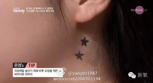比如泰妍在耳朵后面有一个双鱼座形状的纹身。