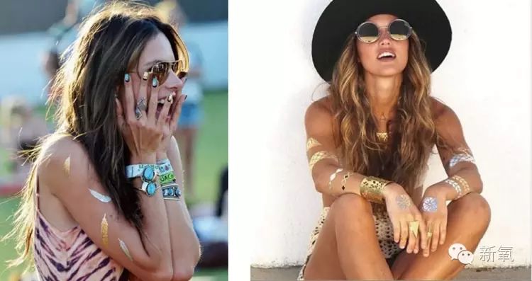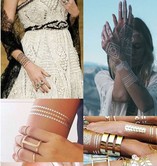 更先进更拉风的还有金属颜色的纹身贴,不像黑黑的那么单调,在阳光下还能闪闪发光,走在夏日的阳光下简直就是人群的中心啊。