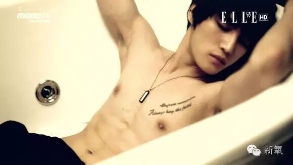金在中胸前纹的“Always keep the faith”代表着始终保持信仰的意思,还有后背的TVfXQ SOUL纹身。