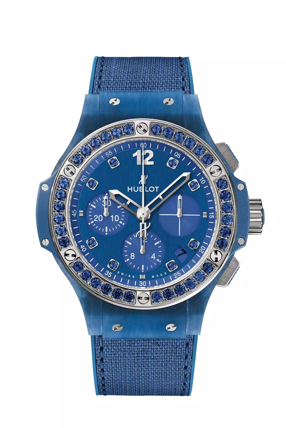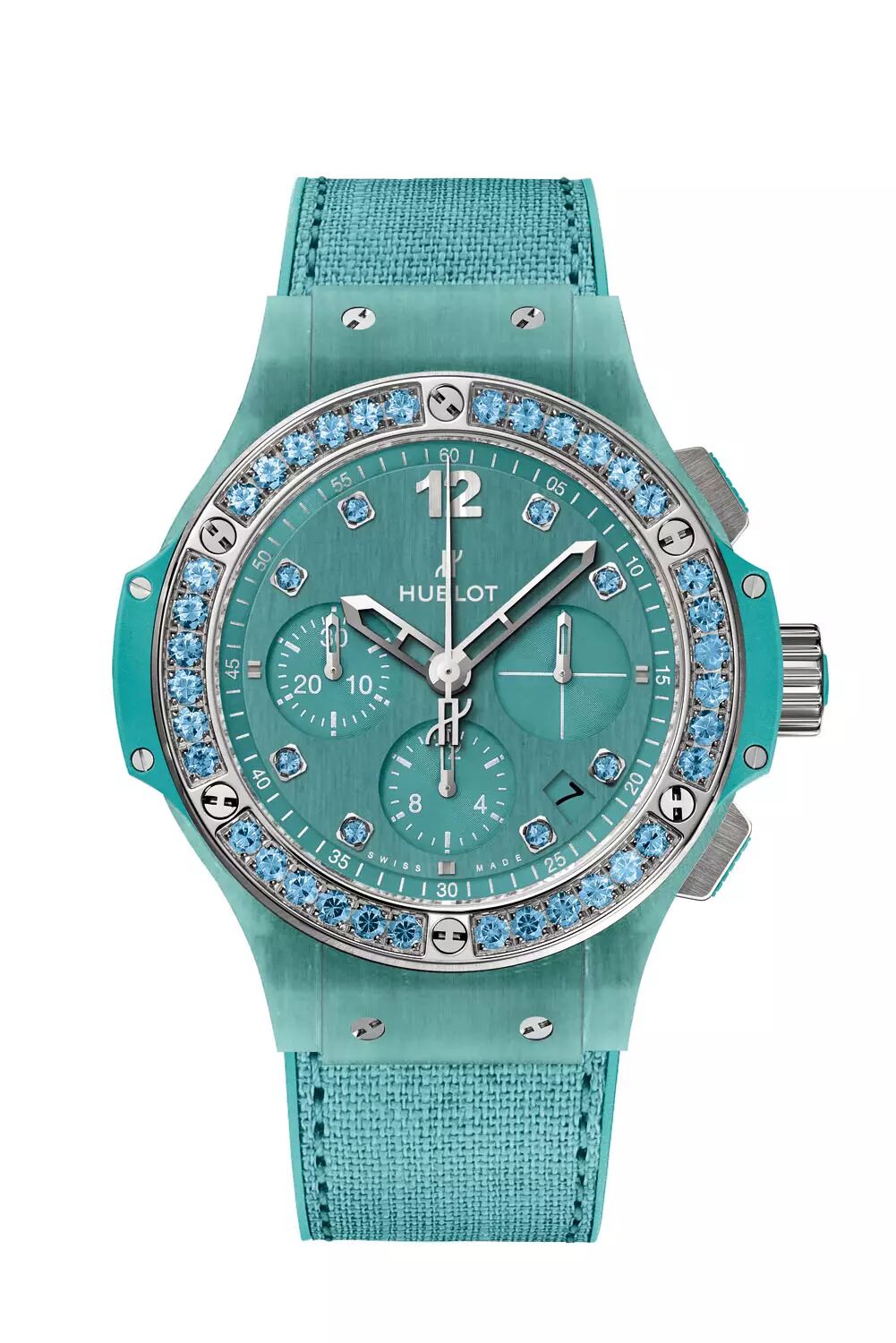 这一光芒四射的腕表系列有4种绚丽色彩可供选择——海蓝色、冰蓝色、紫红色和明橙色,每款限量200枚。色彩极具吸引力,令人垂涎欲滴。Big Bang水果亚麻腕表可完美搭配任何风格,其使用的亚麻运用天然色素进行着色。蓝色或橙色蓝宝石、黄宝石和紫水晶点缀着表圈和表盘,41毫米直径的表壳中配备HUB4300自动上链机械计时机芯。从融合了亚麻材质的橡胶表带,到带透光复合材料保护的亚麻表壳,亚麻表盘和复合树脂镶件,该腕表完美将单色亚麻织物演变为腕间时尚单品。仔细协调色调的对称运用,这种技艺很难掌握,因为颜色会因染料的渗透而变化。需要花费数月时间进行研究和开发,以匹配该材料和色调,进而打造完美结合。
