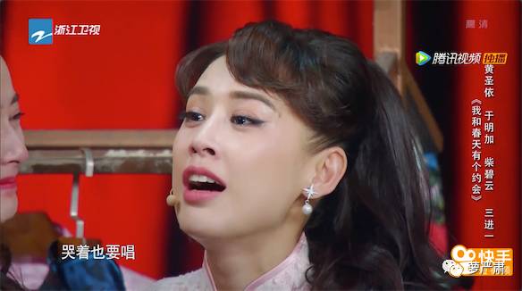 正当于明加闹自杀而有人催他们上台表演之际,黄圣依忽然开始给大家励志:哭着也要唱!!!