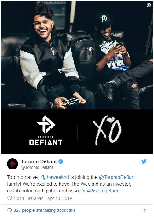 昨日,多伦多捍卫者队发布了一则顶置推文,宣布并欢迎加拿大著名歌手“The Weeknd”投资并加盟队伍的母公司“OverActive Media Group”(OAM)。