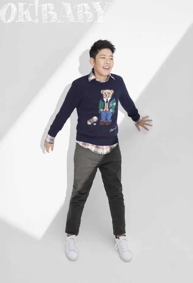 其实石头长的比较壮实,看着也比其他小孩要成熟一些,所以有时候过于幼稚的衣服反而显得不太适合他,相反这种暖男绅士风还是挺适合他的,针织衫和衬衫的搭配,清爽中又不失温暖感觉很好地展现了他的性格特点。