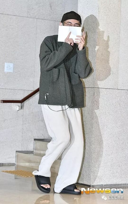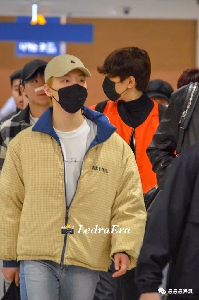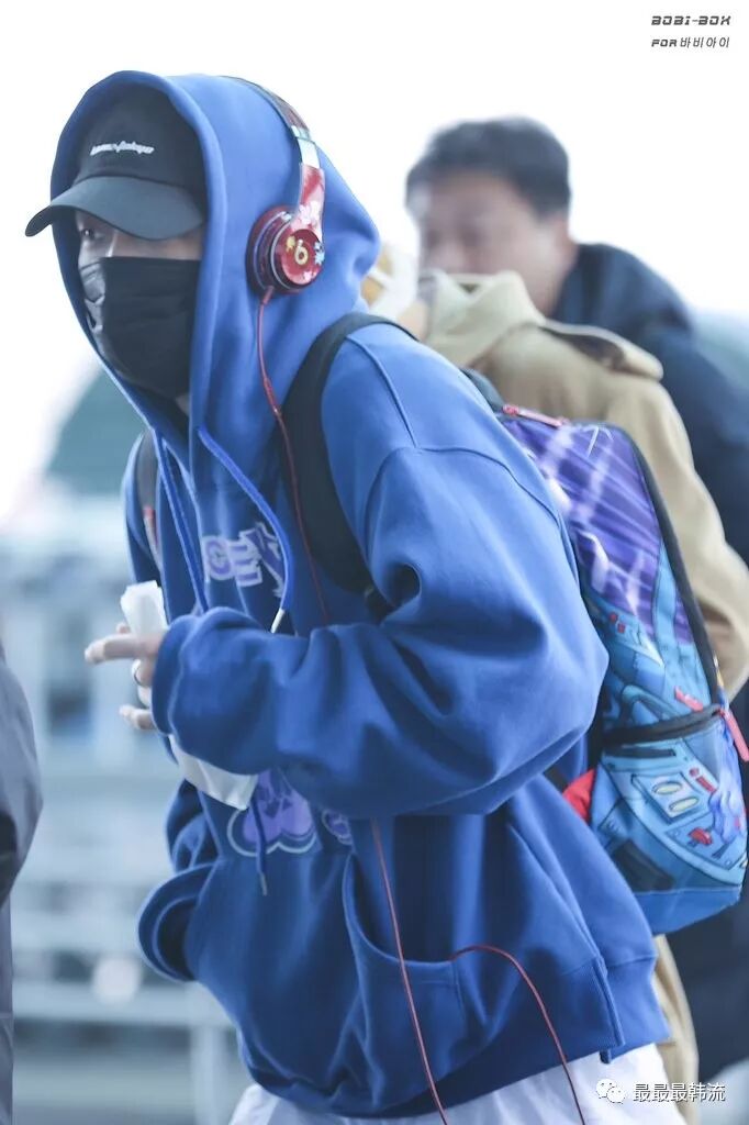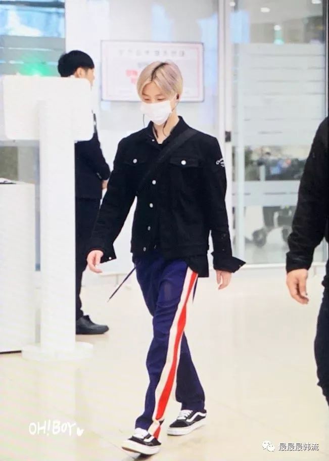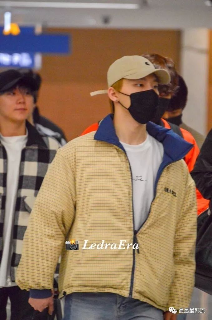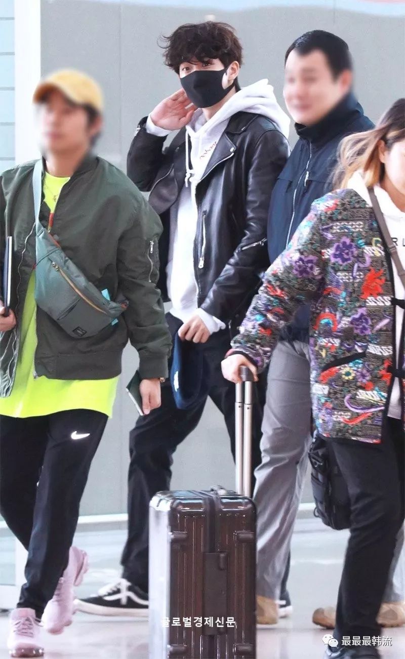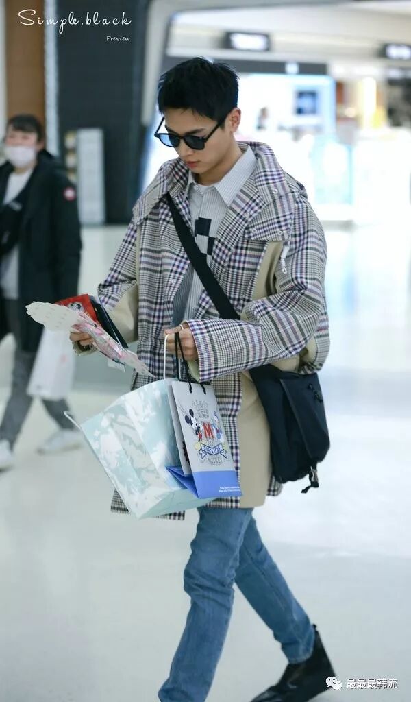 玧其这次的机场终于不是all black系列了。