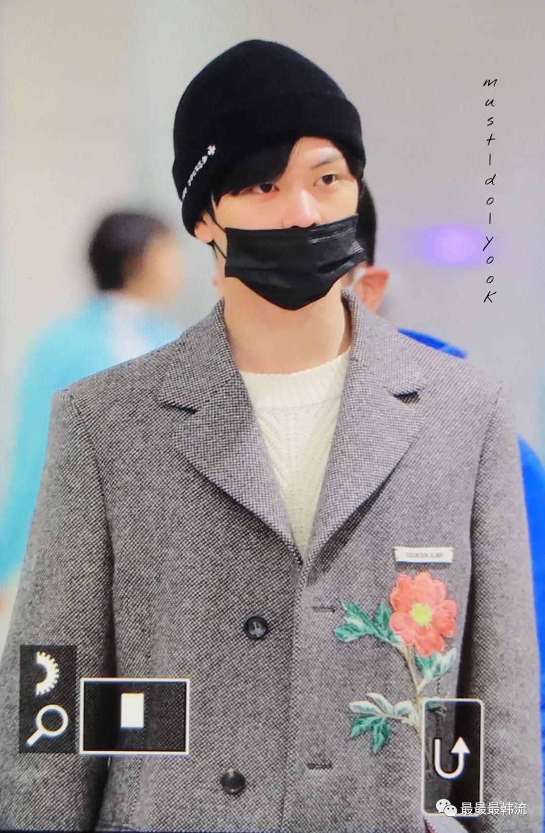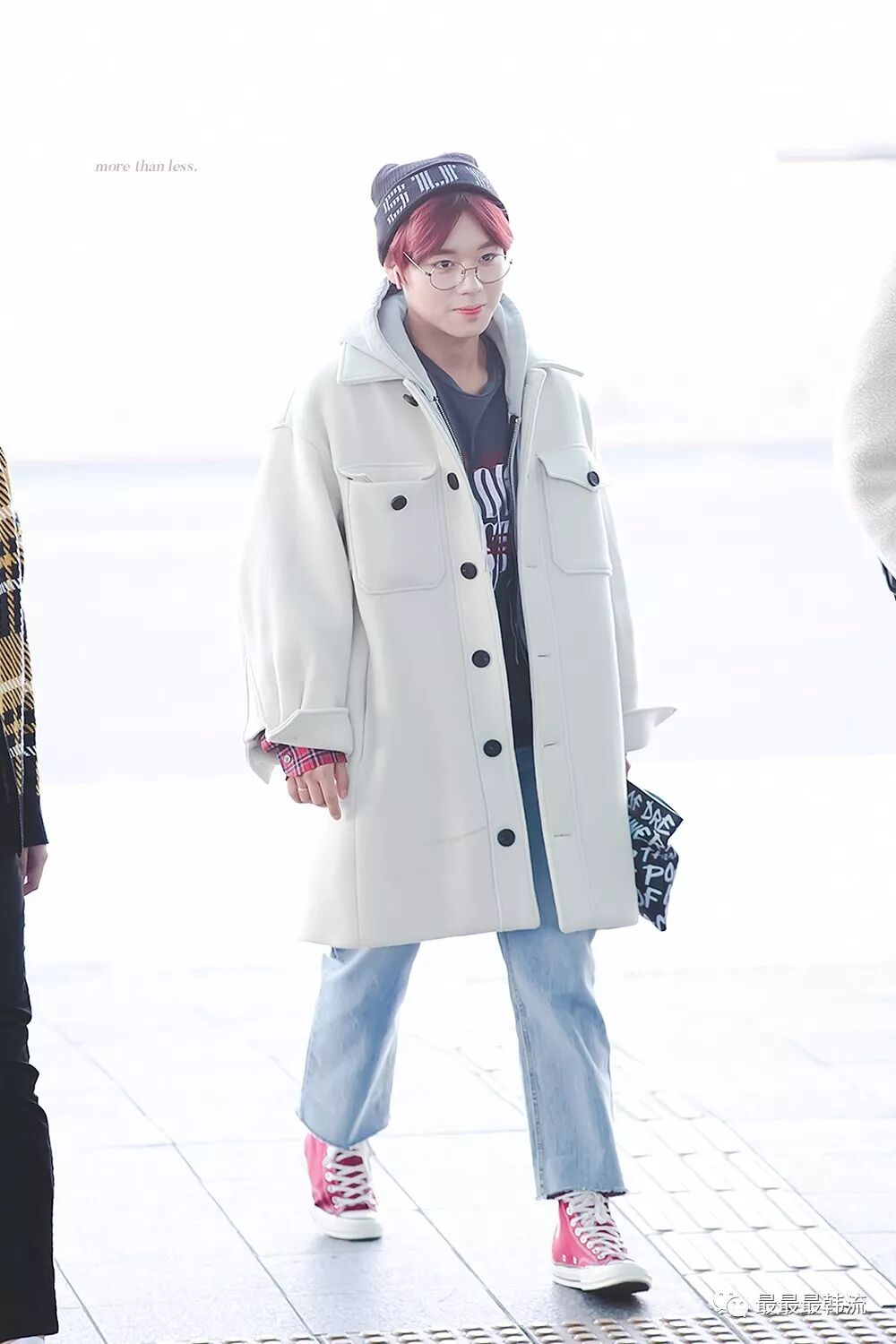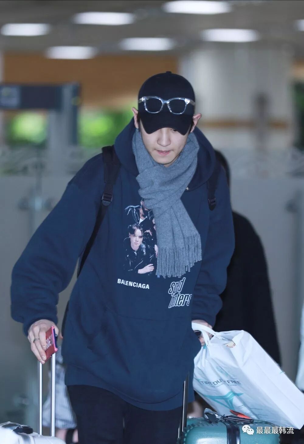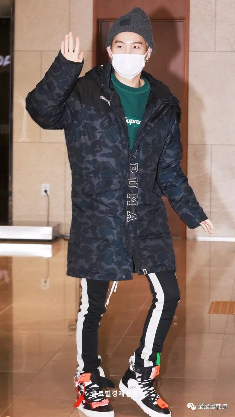玧其这次的机场终于不是all black系列了。