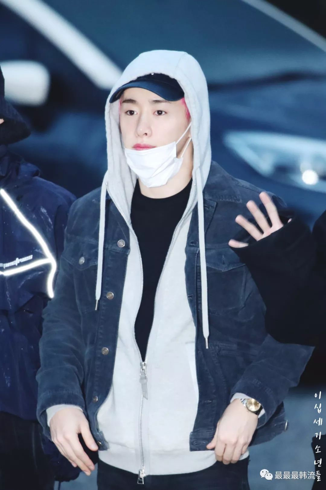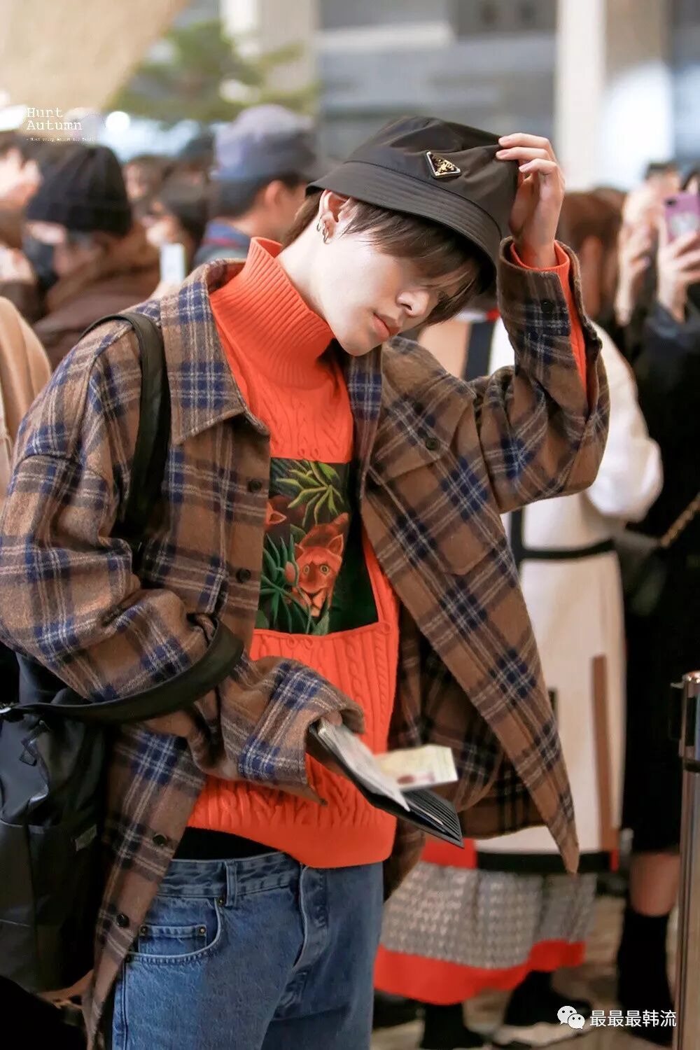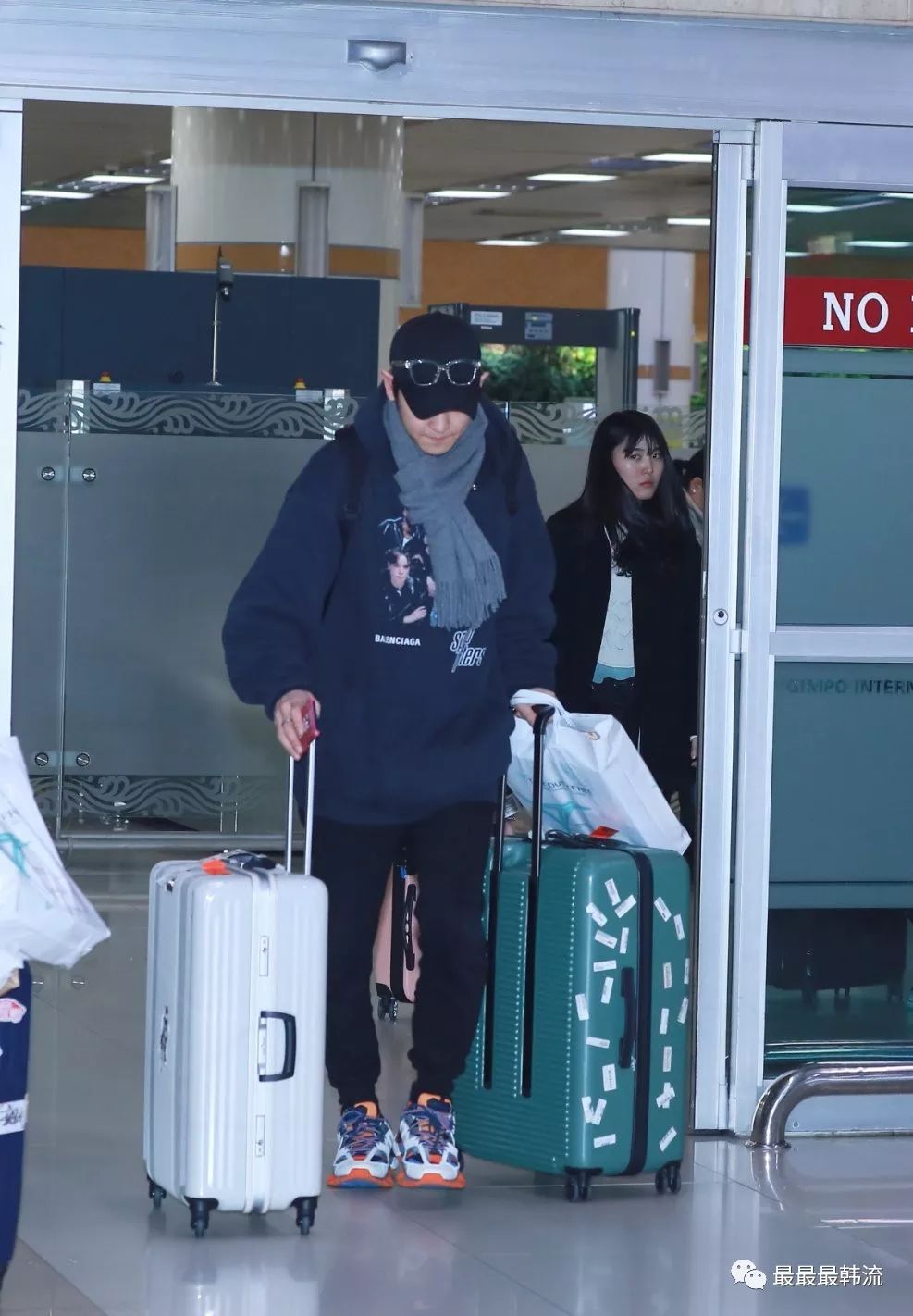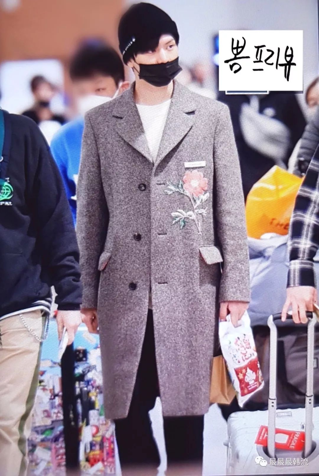 玧其这次的机场终于不是all black系列了。