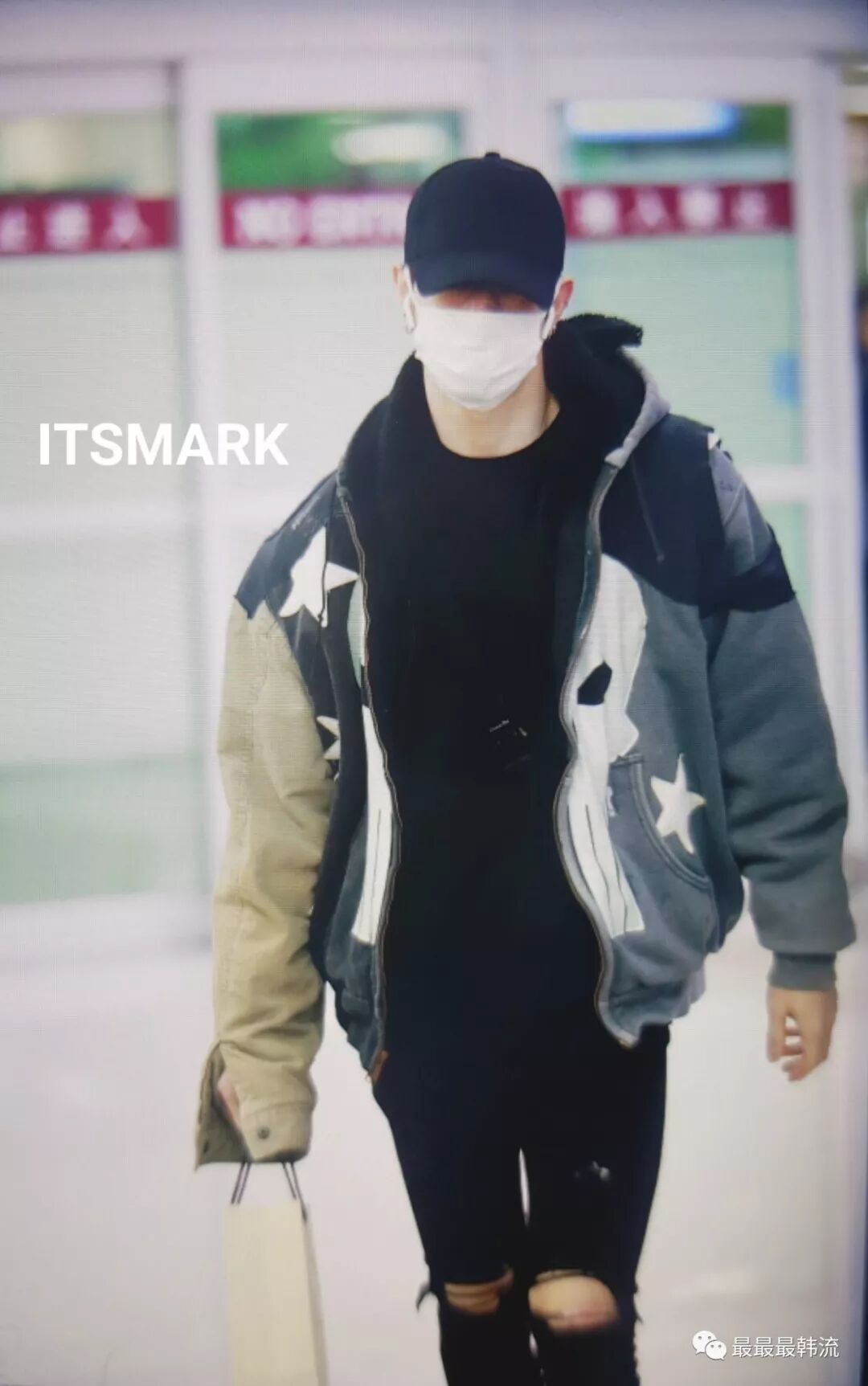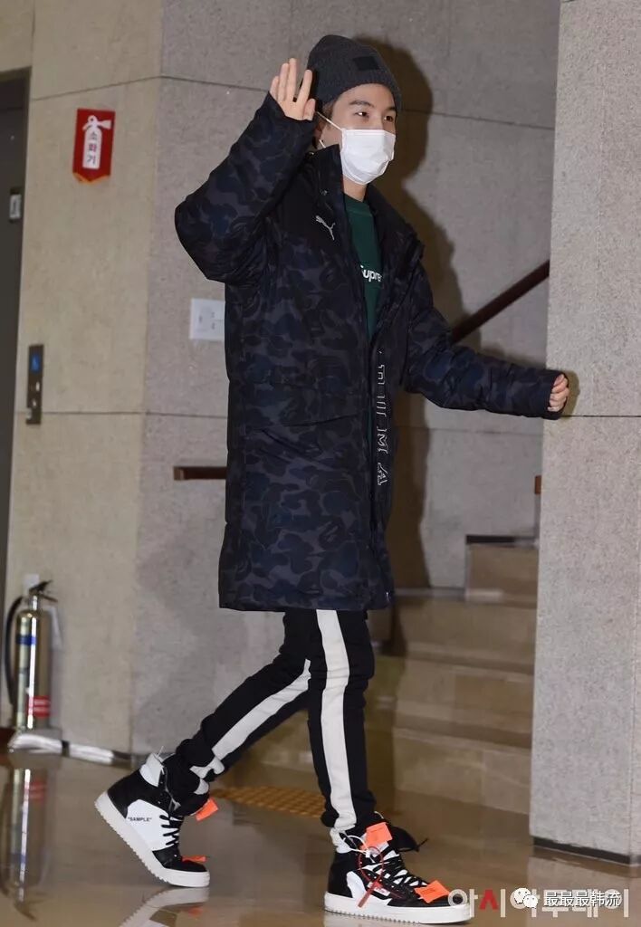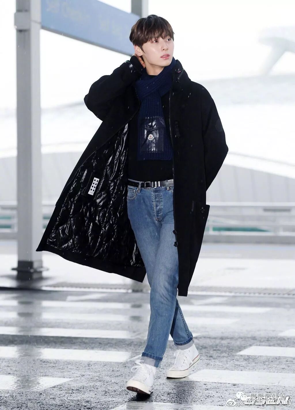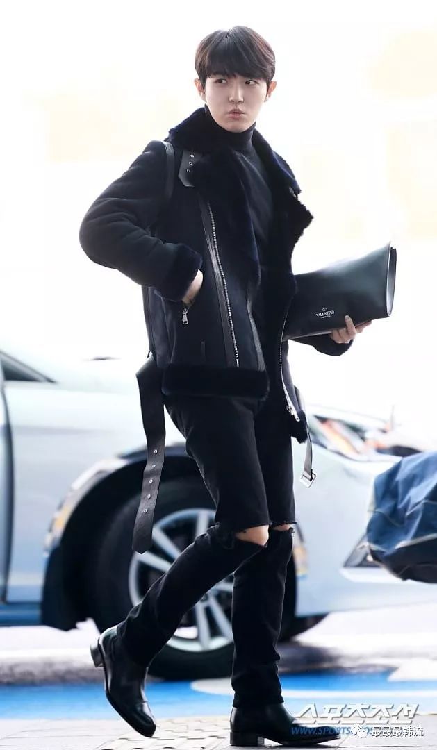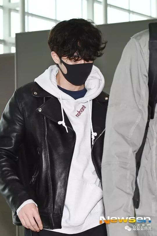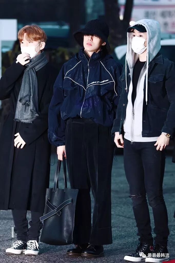 在奂的机场也是all black套装,这款外套我相信大家也依旧见到过不少相似的了。