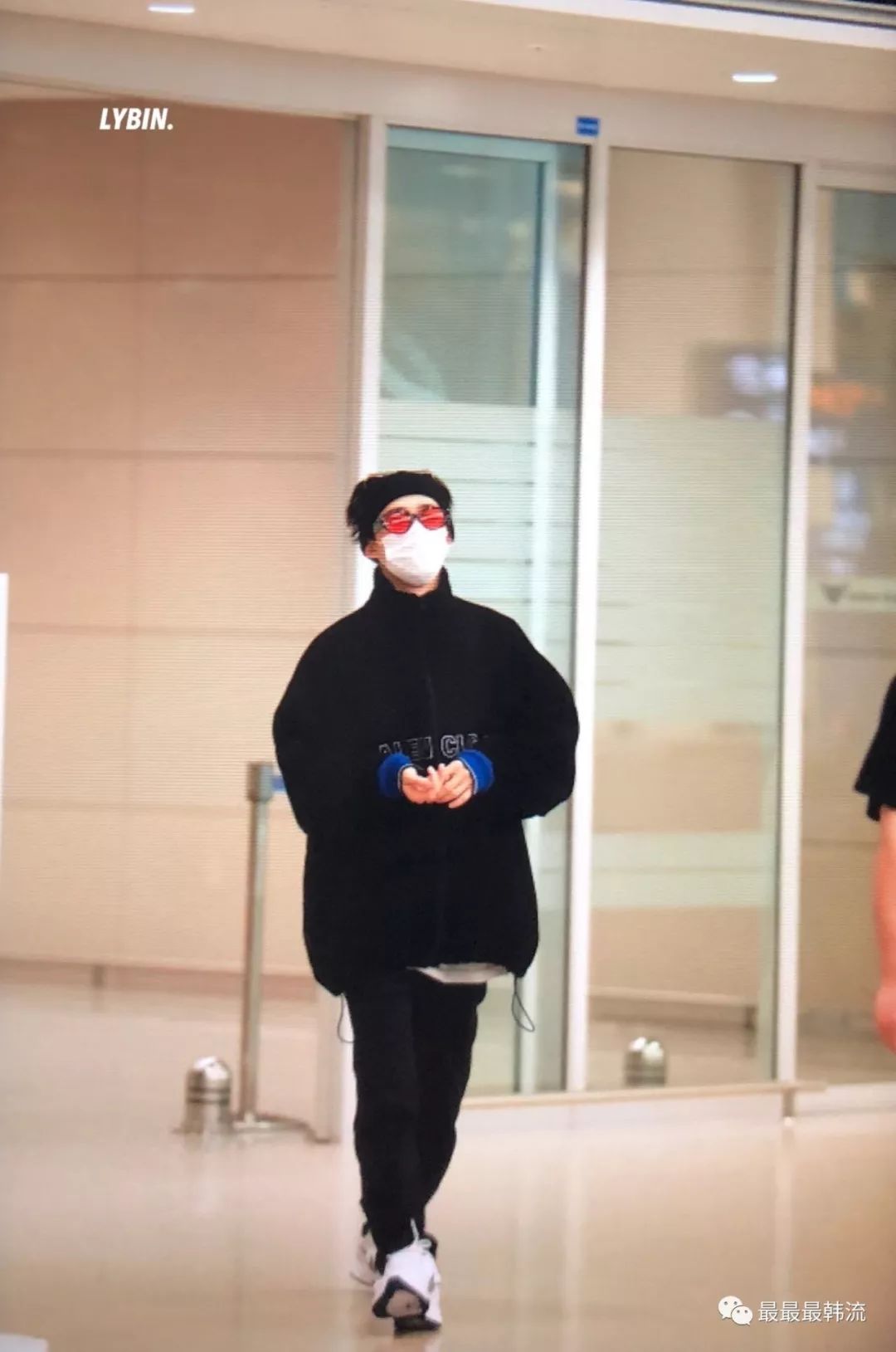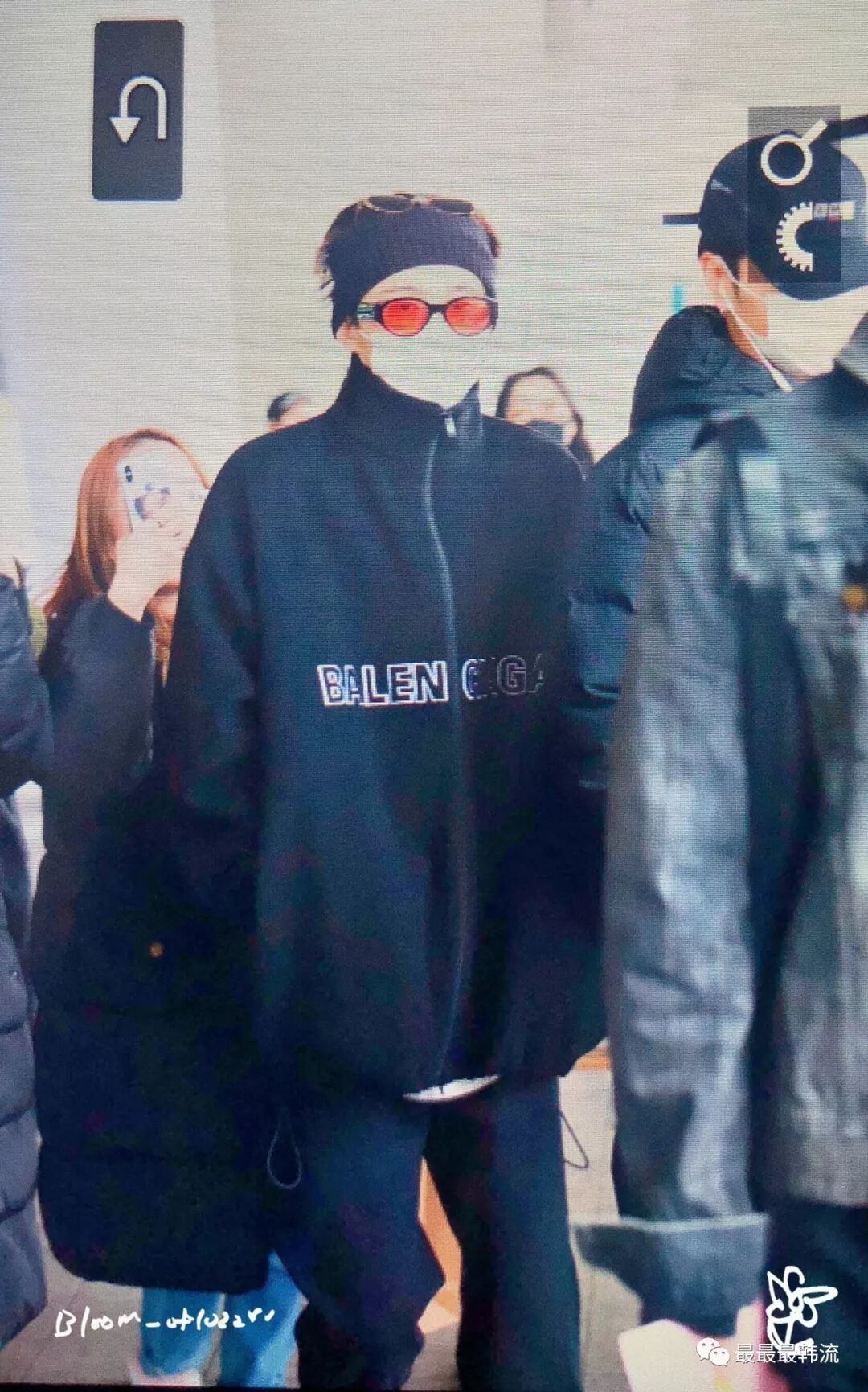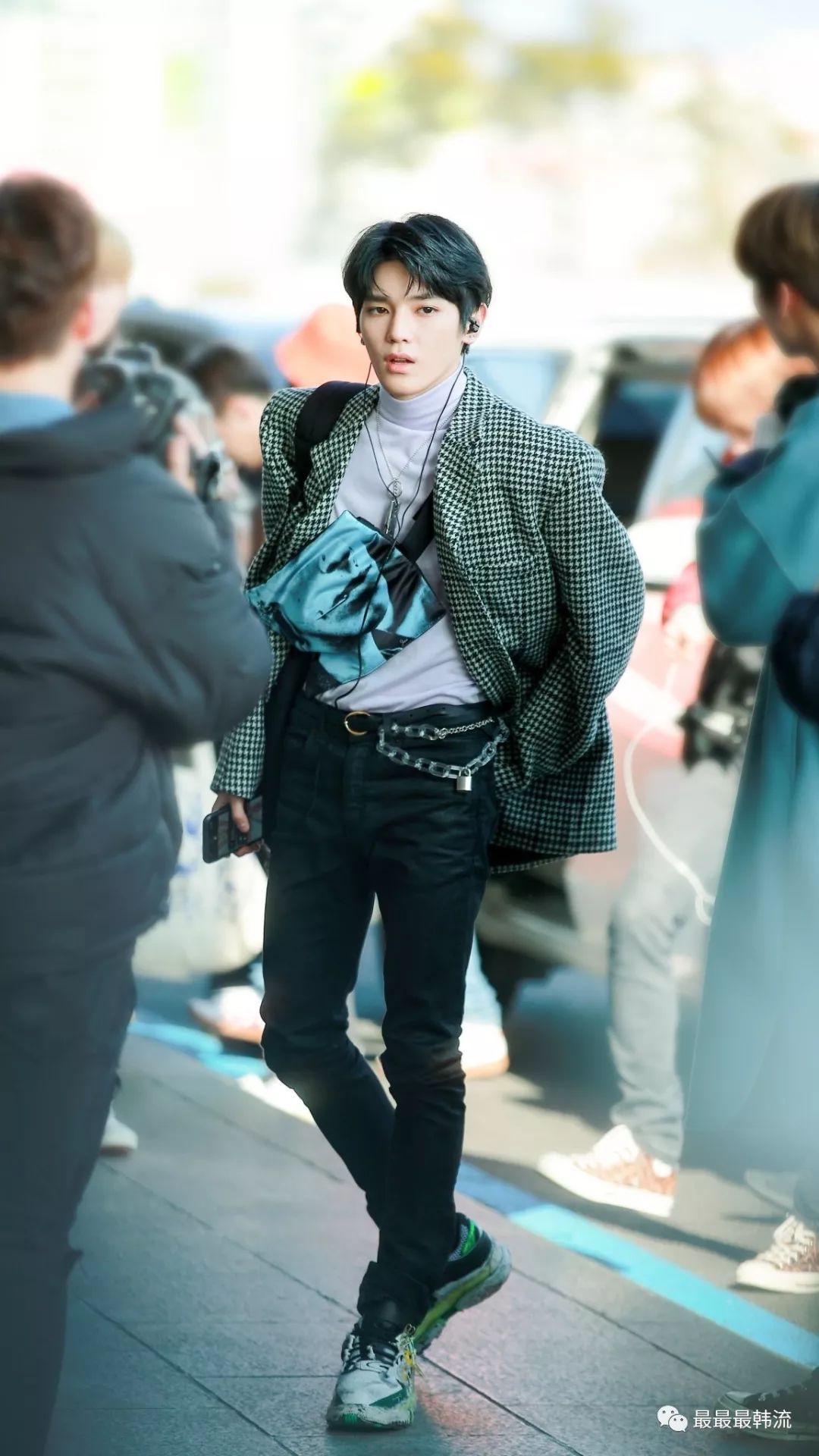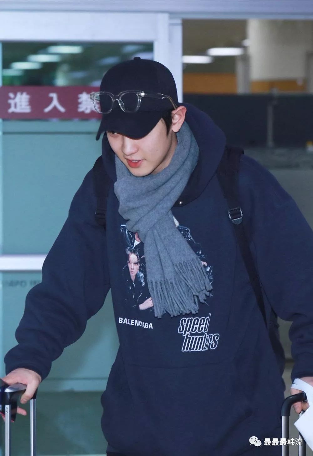 在奂的机场也是all black套装,这款外套我相信大家也依旧见到过不少相似的了。