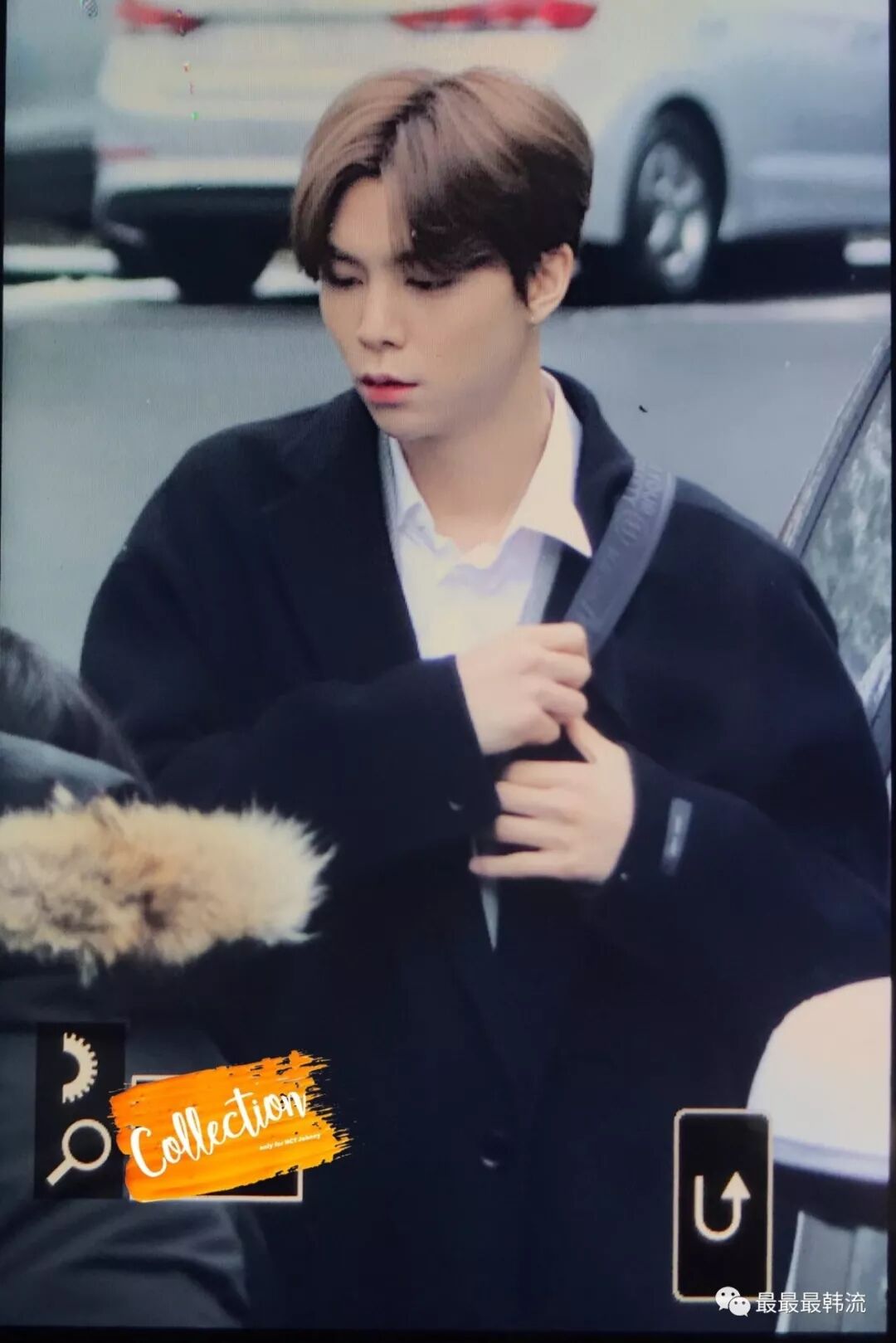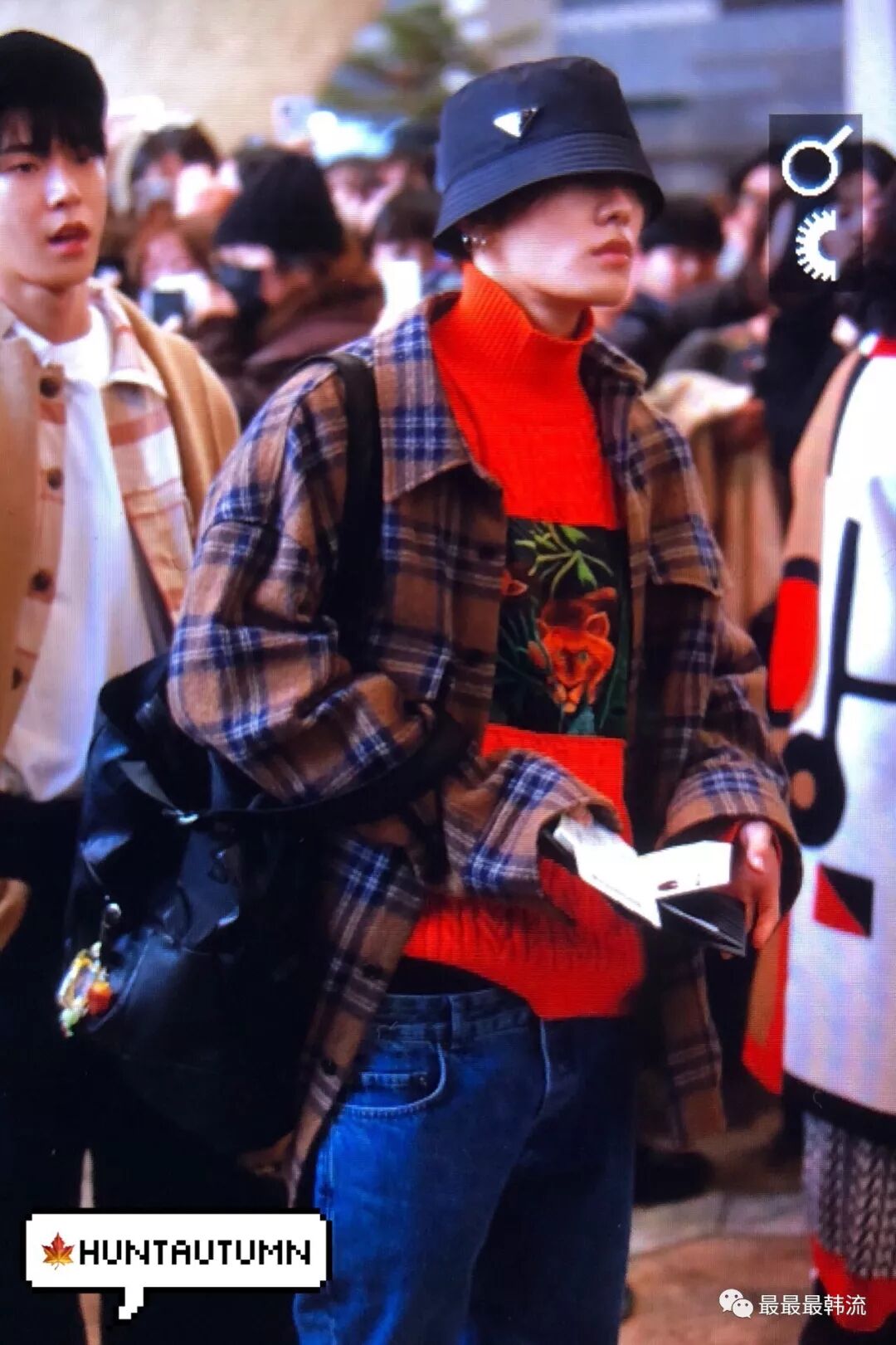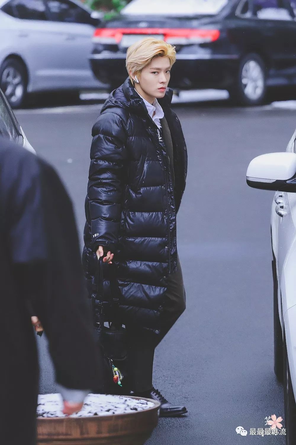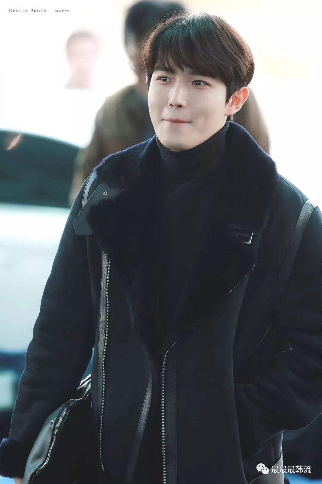 在奂的机场也是all black套装,这款外套我相信大家也依旧见到过不少相似的了。