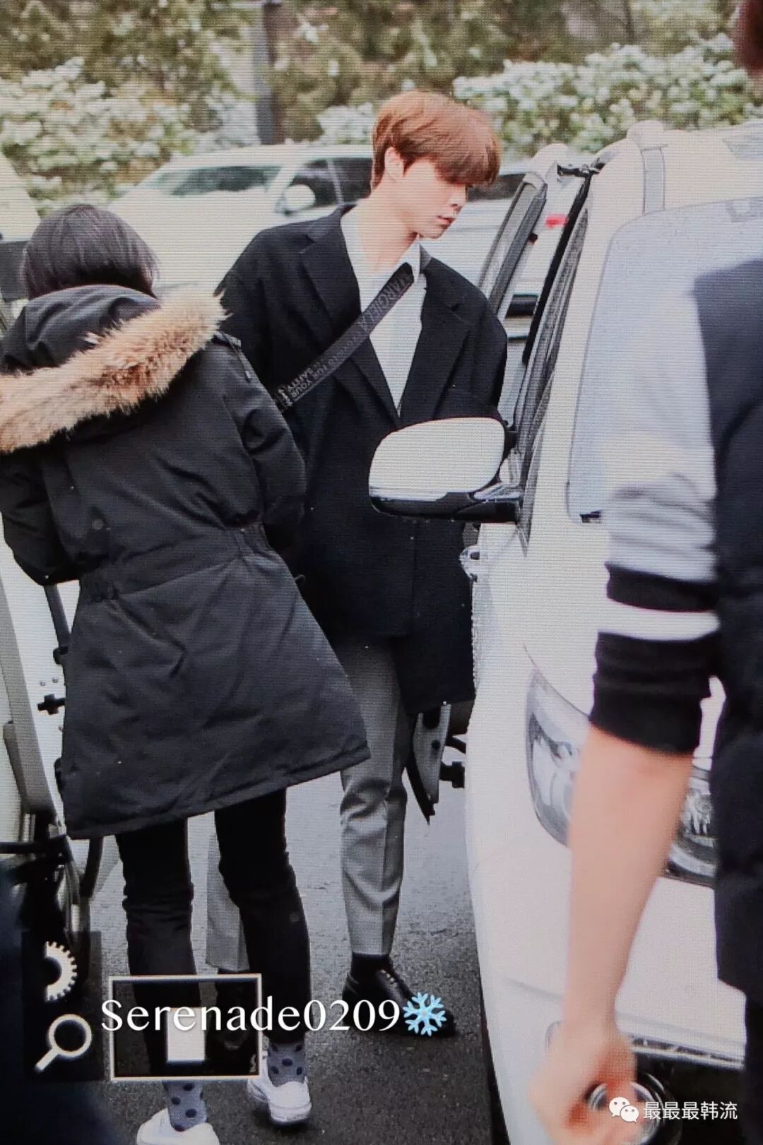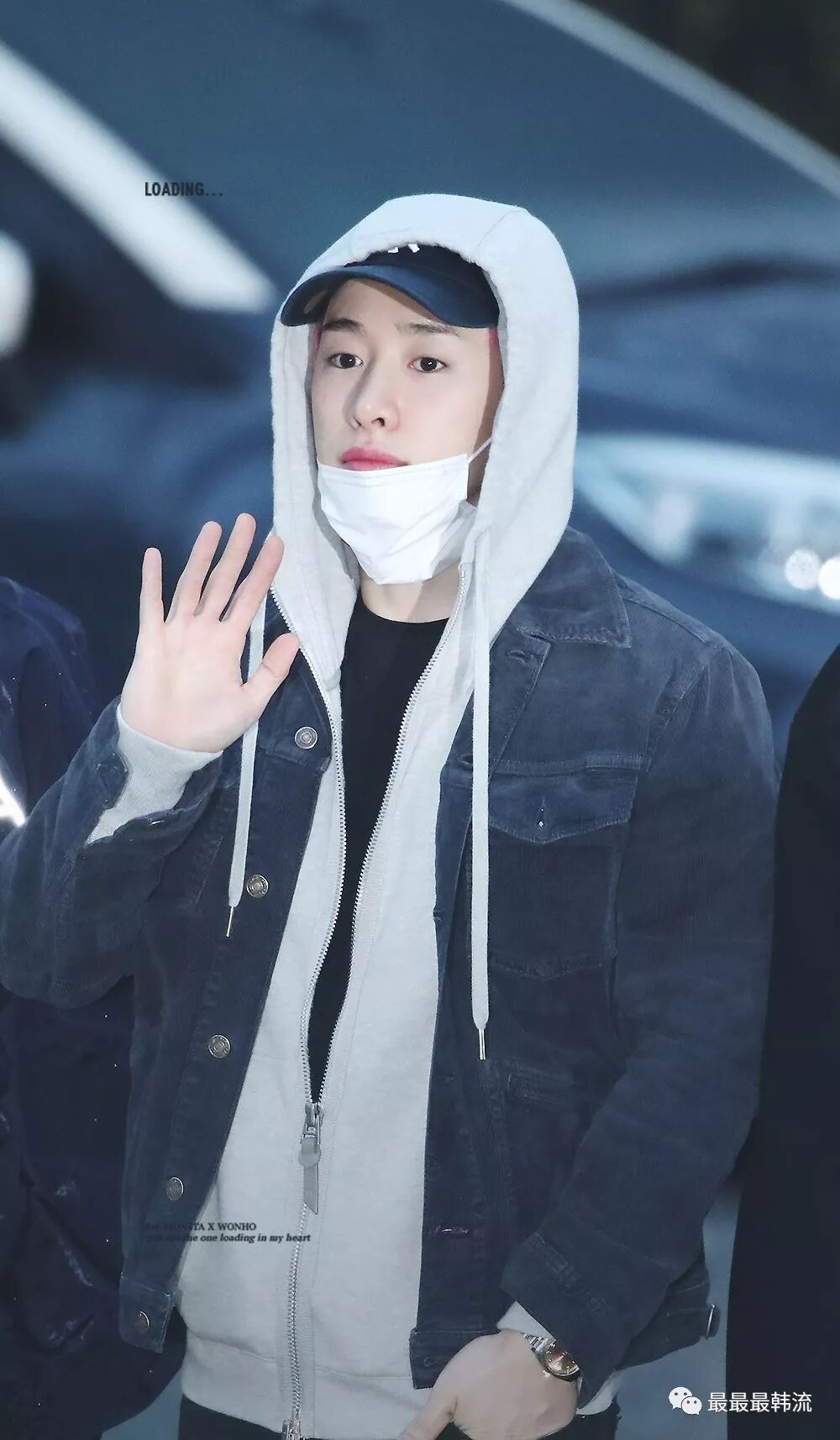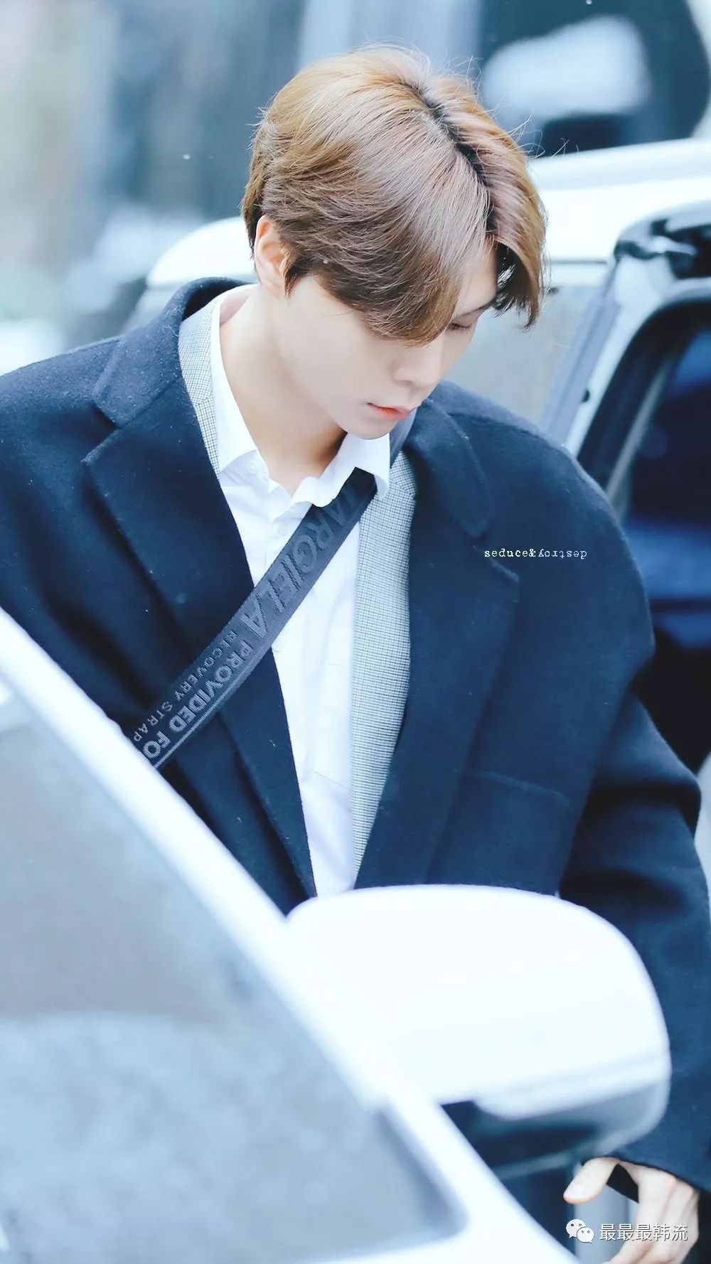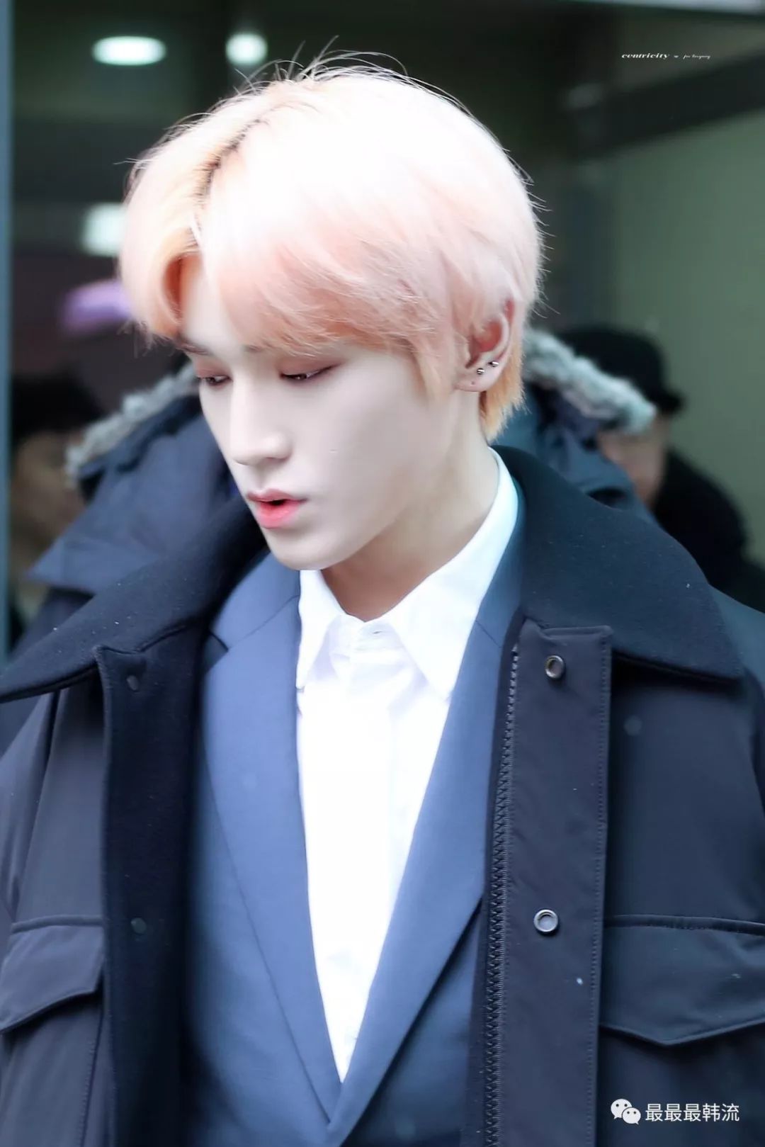 在奂的机场也是all black套装,这款外套我相信大家也依旧见到过不少相似的了。