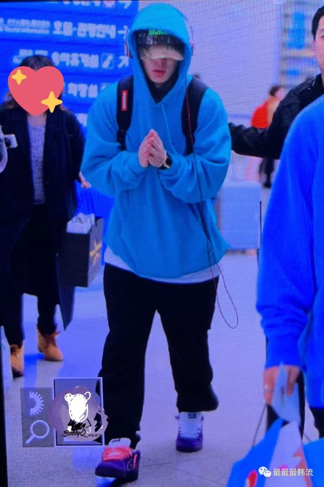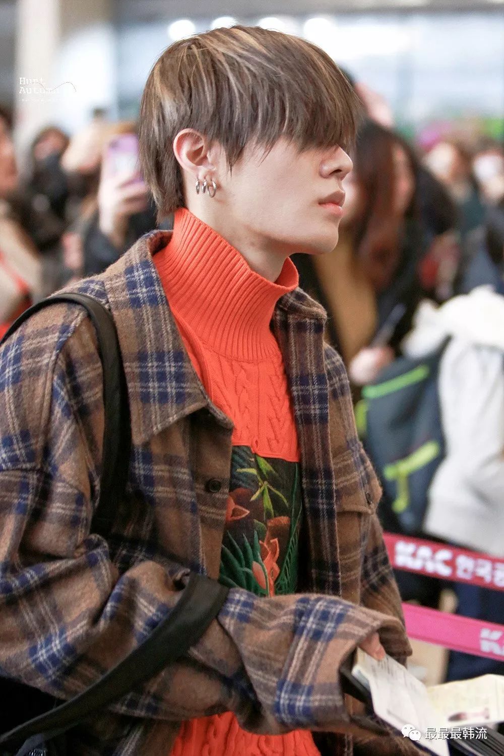 Bobby一直都是队内服装最具特色的一人,这次机场虽然穿着比以往日常了些,但还是有很多独具个人特色的搭配。