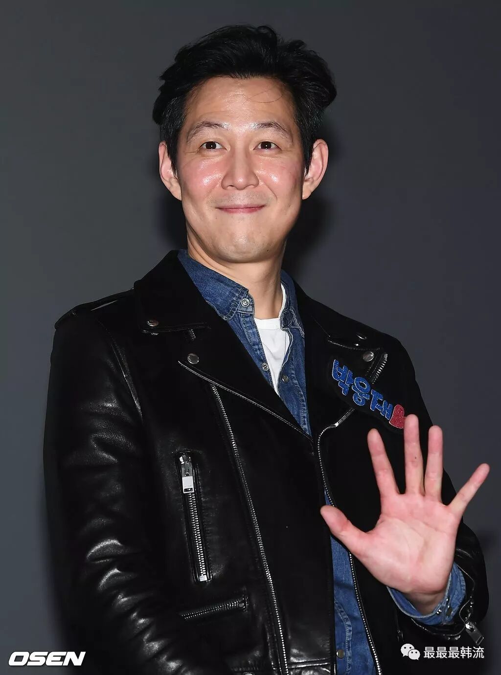 李政宰参加活动的这套搭配也是非常帅气的,黑色皮衣果然是提高男士硬汉气概的必备单品之一。