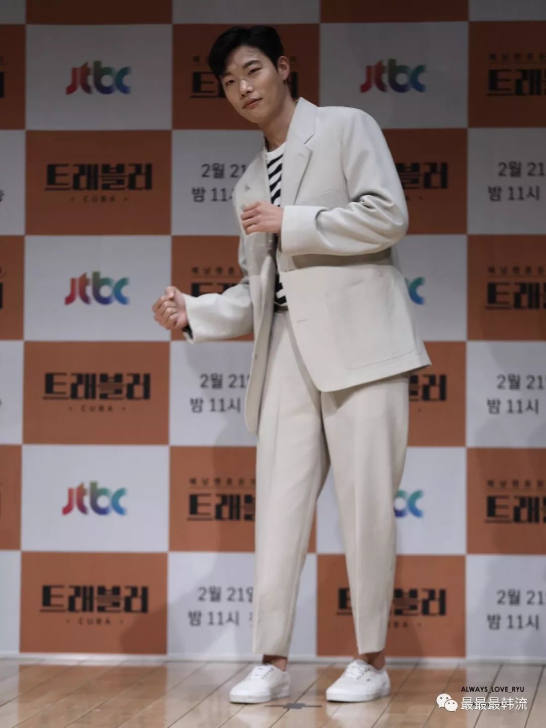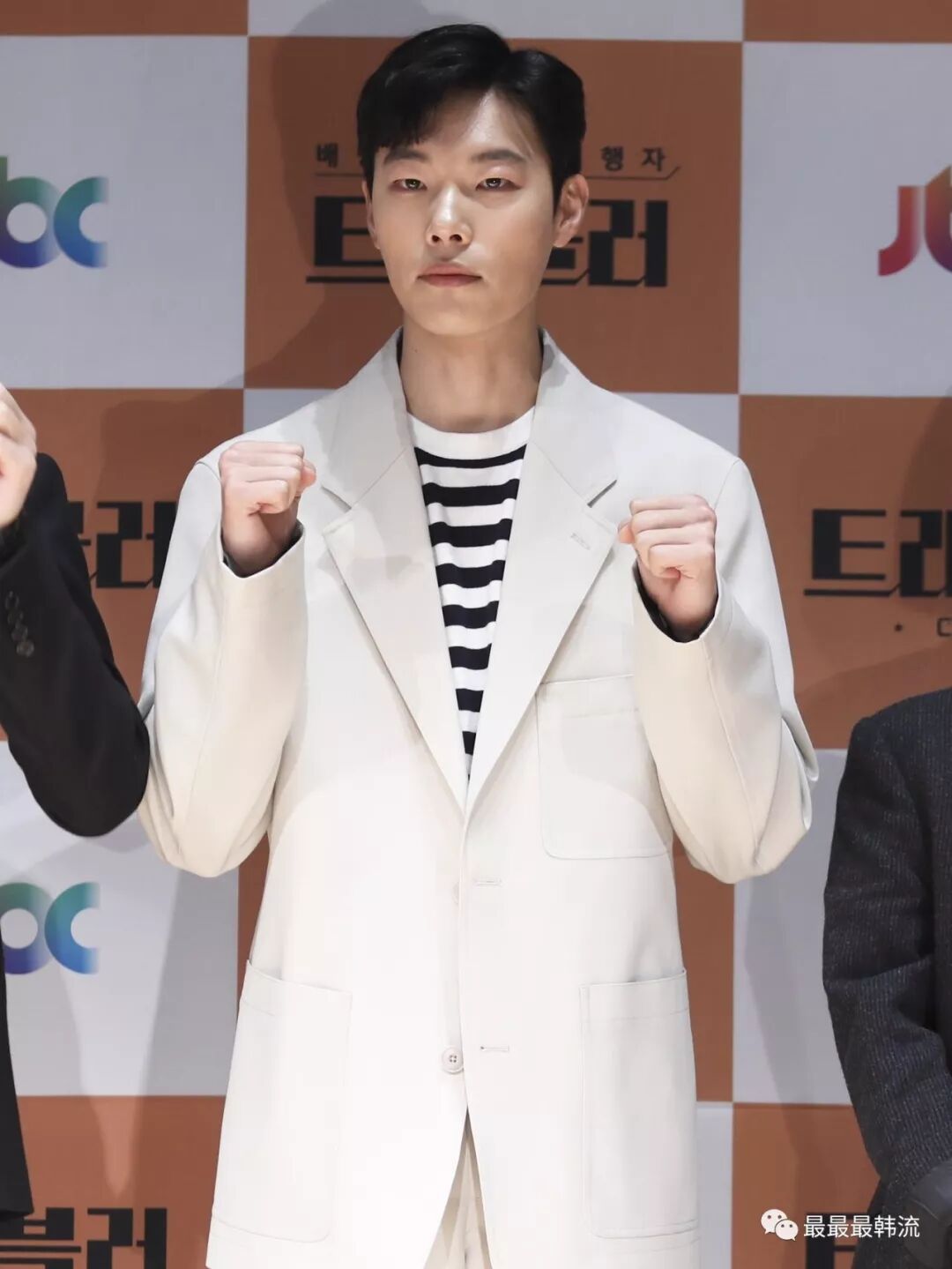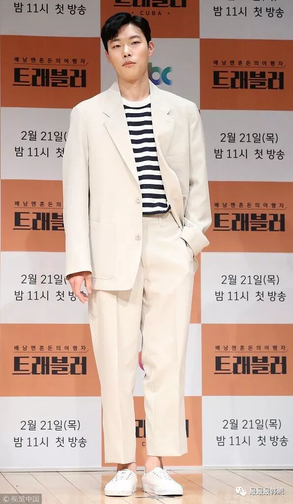 虽然也是西装,但是柳俊烈的这一套就没有那么正式,更偏向休闲风。