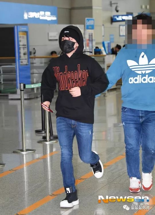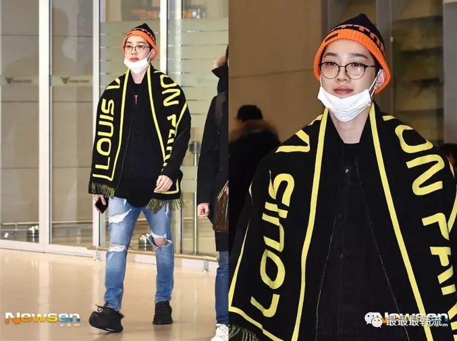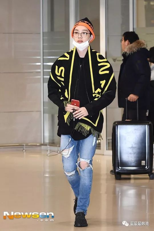 大黄这次的机场终于不是all black了,虽然只是最常规的牛仔裤,但也很令人欣慰。