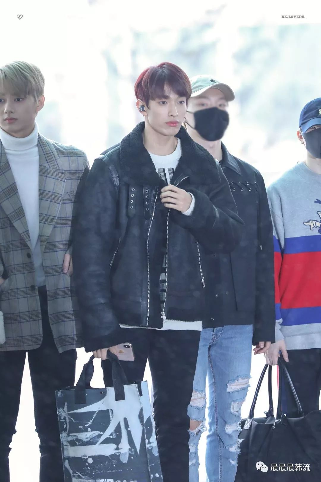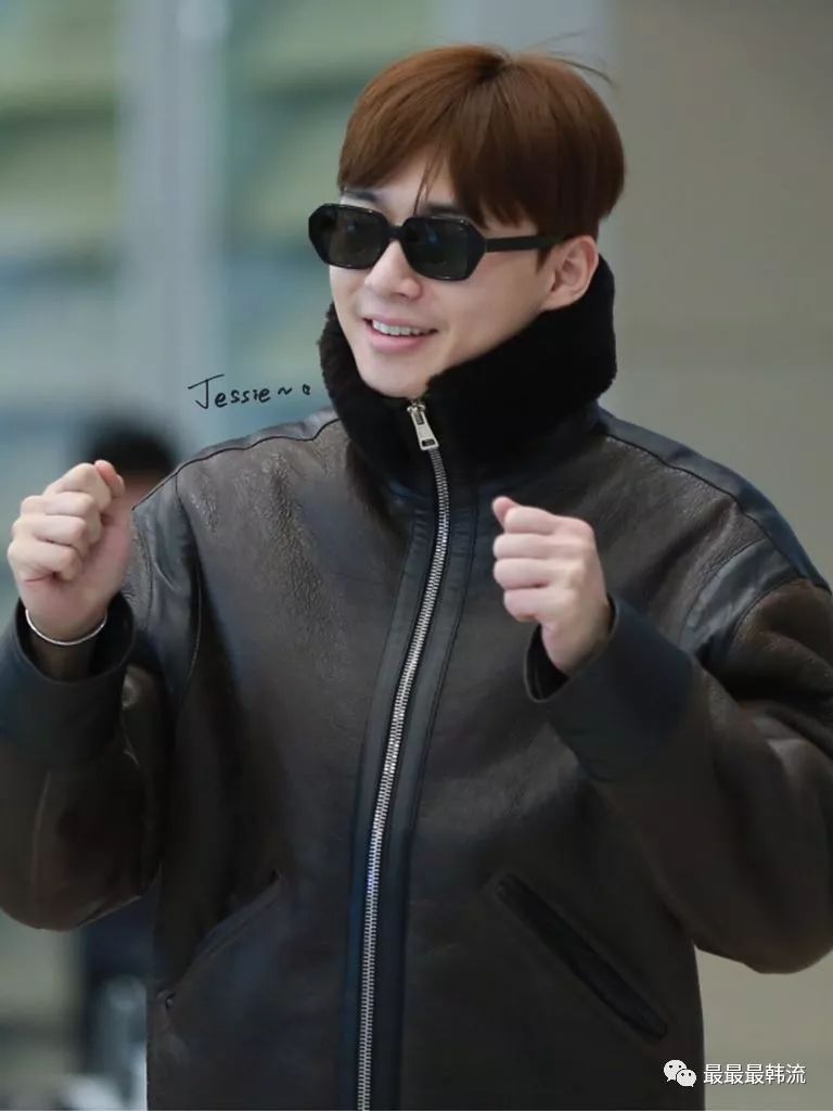 DK本次机场也是身着这款大家熟悉的黑色皮衣。
