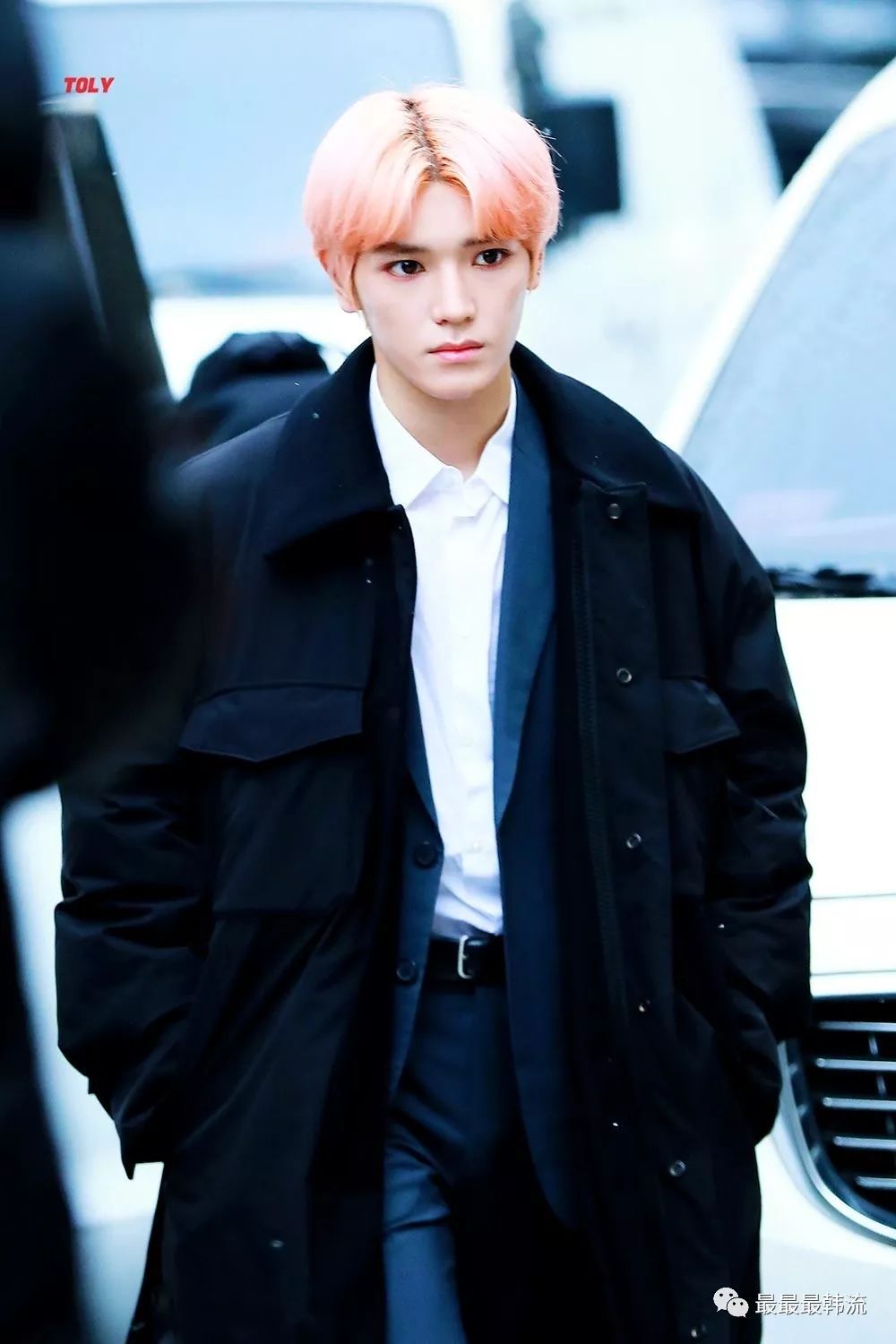 泰容的粉色头发在人群中真的很有辨识度。