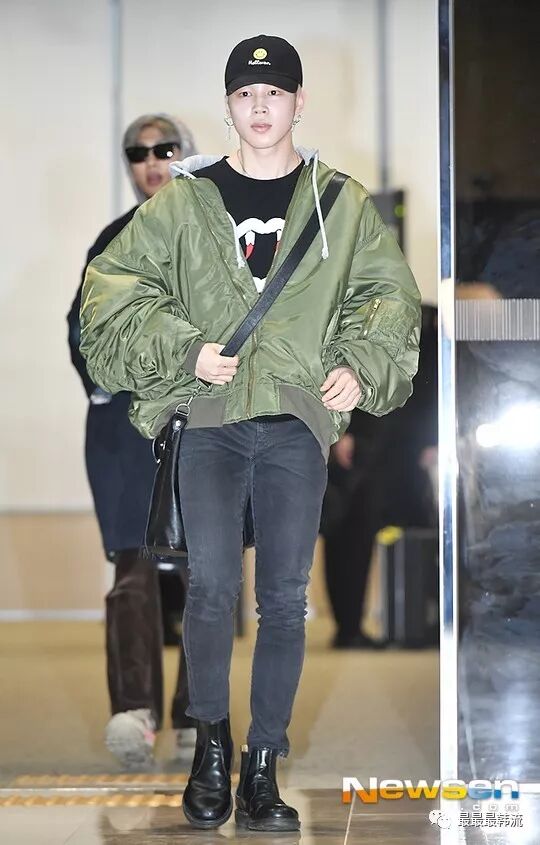 智旻这次的机场的服装也是粉丝们比较常见的,这件绿色外套已经在镜头面前出现过好几次了。