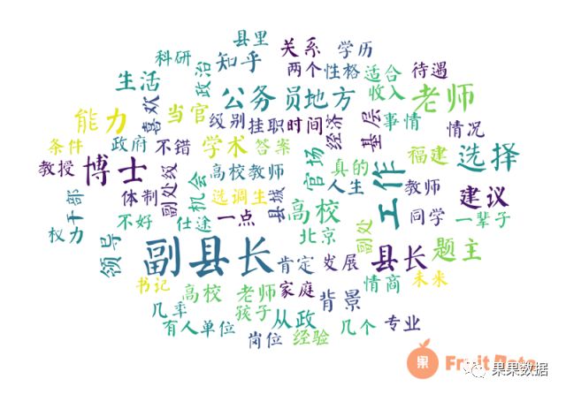 该问题一共有590个回答,我们将答案的词频做了统计。从高频词汇来看,回答者们对“副县长”相关的词汇提及更多。