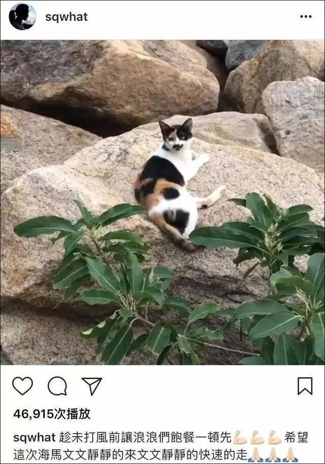 舒淇不仅自己养猫,还会特别的关注流浪猫,在台风来临前,也不顾自身安危,跑去关心流浪猫!