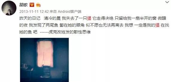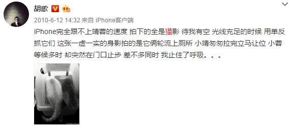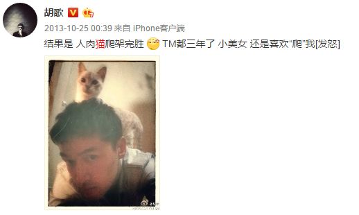 胡歌平时很少发微博,但还是能看到他发和猫咪的互动,而且持续了很多年。