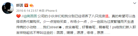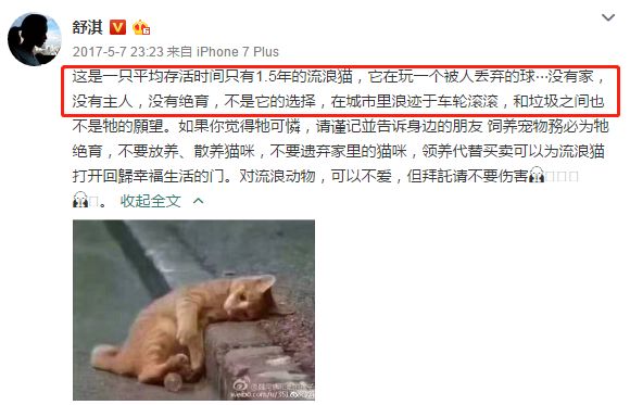 很多年了,舒淇只要看到流量猫的信息,都会在社交媒体上呼吁大家不要伤害。