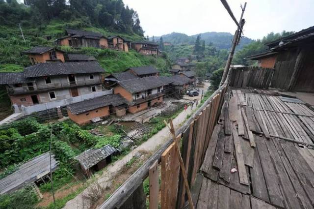 山寨吊脚楼随着地势,依山而建,