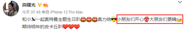 当天(20),高曙光、王玲夫妇还特意邀请到儿子的同学、朋友前来家中做客玩耍,为“小猴子”庆生,生日现场相当热闹。站在大合照C位的高曙光一家三口,在众人的欢呼声中留下温馨的全家福画面。事后,高曙光亦是感慨称“小朋友们开心,大朋友们更嗨”,与友人相约期待明年的皮卡丘趴!