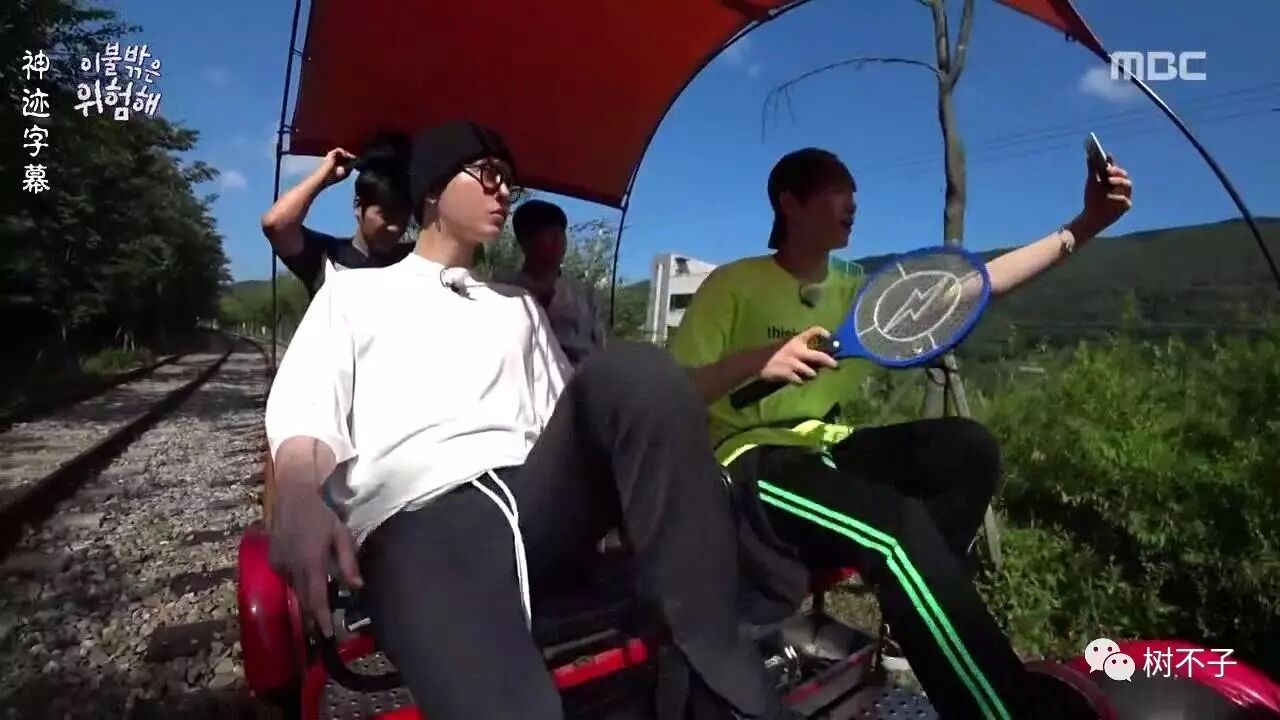 就是去踩轨道自行车也要带上心爱的电蚊拍。
