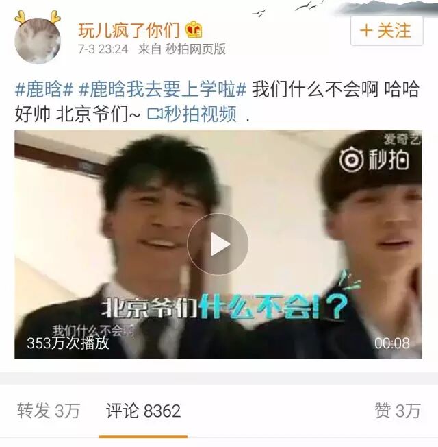 不知道为什么看动图就想和声“你是电你是光,you are my star”,然而还没等我开始画风就突变了,Excuse me???天竺少女是什么鬼?感觉鹿晗跟大老师在一起终于解锁了体内的逗比封印,前二十几年真是为难了傻狍子。