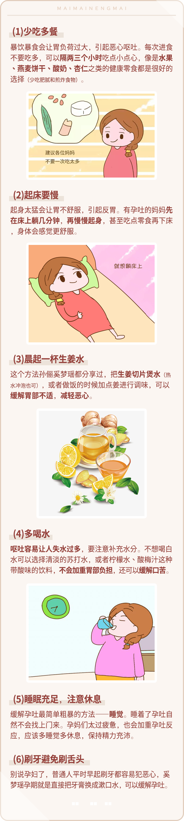 同时少吃生冷,寒凉、辛辣等食物(吸烟喝酒就更不要碰了)保持规律作息和好心情,更有助于宝宝发育哦!