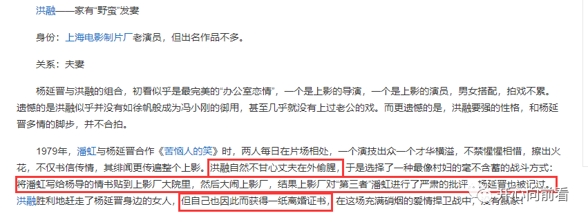 最终,潘虹受到了上影厂的严肃批评,杨延晋被记过,而看似胜利的洪融,和丈夫的婚姻也因此走到了尽头。