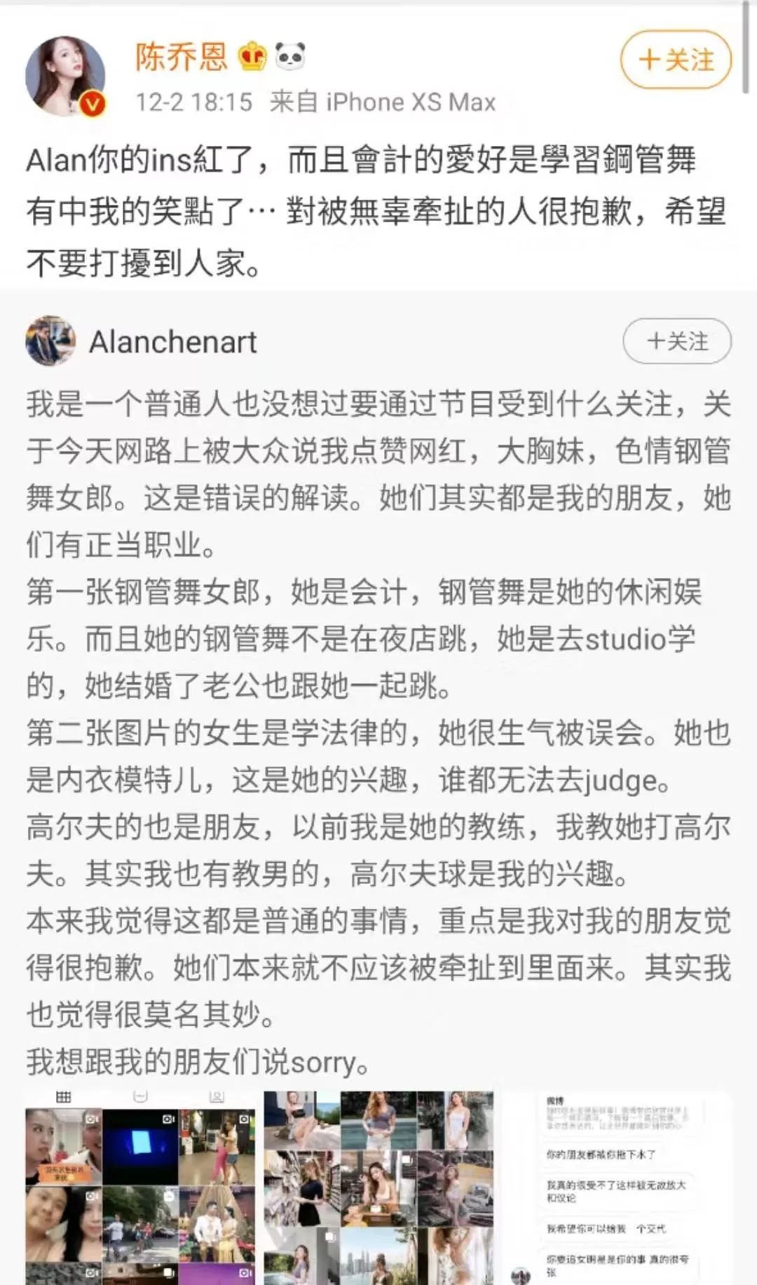 有网友觉得,如果确实只是普通朋友的话,那以“大胸妹”、“色情钢管舞女郎”等标签去形容素人有点不妥吧?况且陈乔恩自己都觉得没问题,旁人似乎也不好说啥……