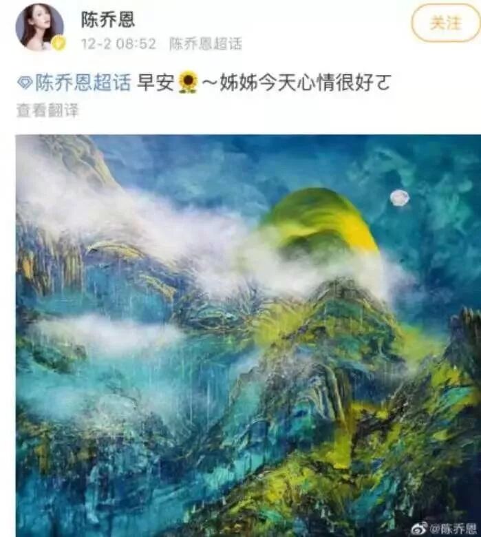 一直处于被催婚前列的陈乔恩在微博认爱,语气真挚,“爱情没有放弃我”这样的句子还是很打动人的。