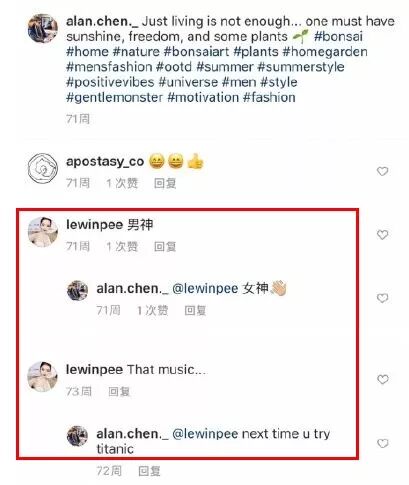 这个女生的ins艾伦一直有在点赞,评论互动也是不缺。