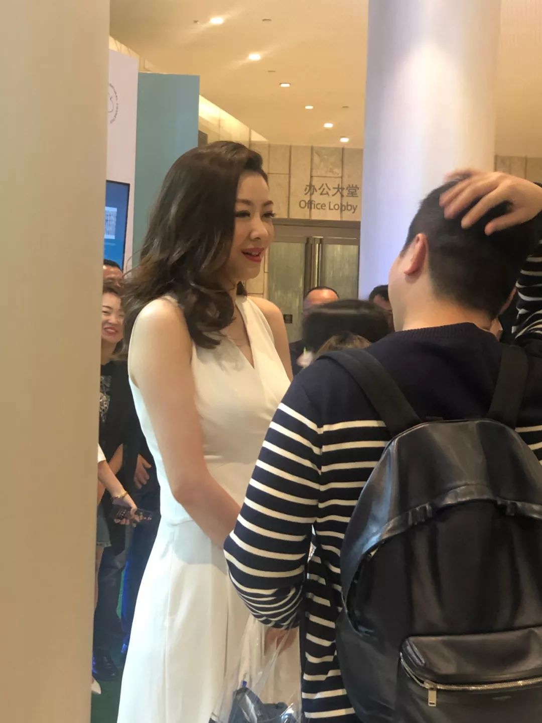如果只给官方照片,那显得刚刚的夸奖太假了,放上我苹果相机后置摄像头无ps无滤镜无美颜偷拍照一张(抓拍技术还是挺渣的)。不知大家有没有从画面中感受到熊黛林真的很高呀,脖子以下都是腿的典范了,像我这样的女汉子站她旁边居然只到肩膀。