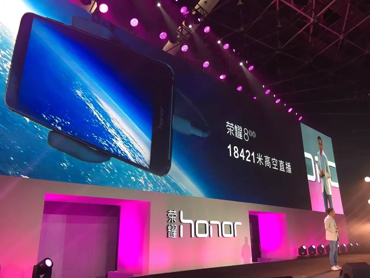 明哥回顾荣耀在999天里一路走来的经历的种种挫折与成就之后,又向大家交出了荣耀8上市50天,便已取得卖出150万台的好成绩。然后还胸有成竹的讲到,荣耀8就是厉害到能上天!这可不是吹牛,因为前段时间荣耀8真的在18421米的高空进行了直播。以后再有人说荣哥咋就不上天的时候,荣哥就把荣耀8掏出来给他看!