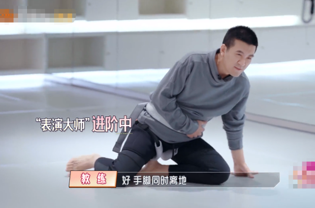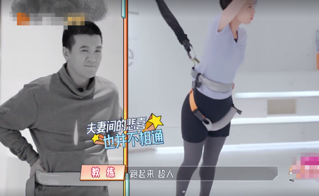 杨子立刻“痛苦地”跪在地上,终于成功把老婆从教练身边拉了过来。