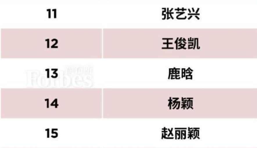 2019年福布斯名人榜,杨颖位列第14名,黄晓明则跌出前百。