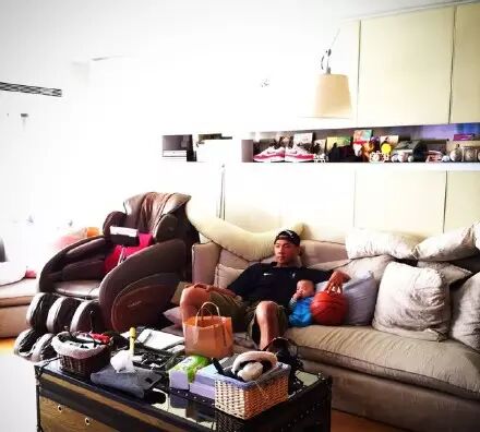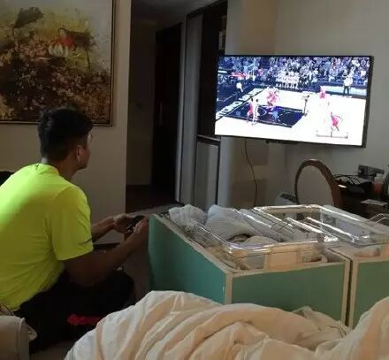 ▲离不开篮球的爸爸说:飞飞,以后你长到200公分就打一号和二号