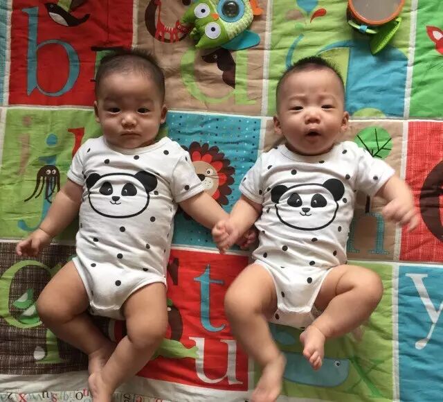 腾讯娱乐讯 黑人陈建州跟范玮琪,恋爱10年于2011年结婚,4年后终于有了黑白配爱情结晶,今年1月睿飞、睿翔兄弟(小名大小熊猫)出生。俩兄弟降生以来黑人爸比从“爱妻号”炫妻狂魔,秒变炫娃狂魔,让关注他的粉丝们都中了飞飞翔翔的毒,纯天然无公害的呆萌让人无力招架,都甘愿本放死守,等待围观俩兄弟的最新成长近况。